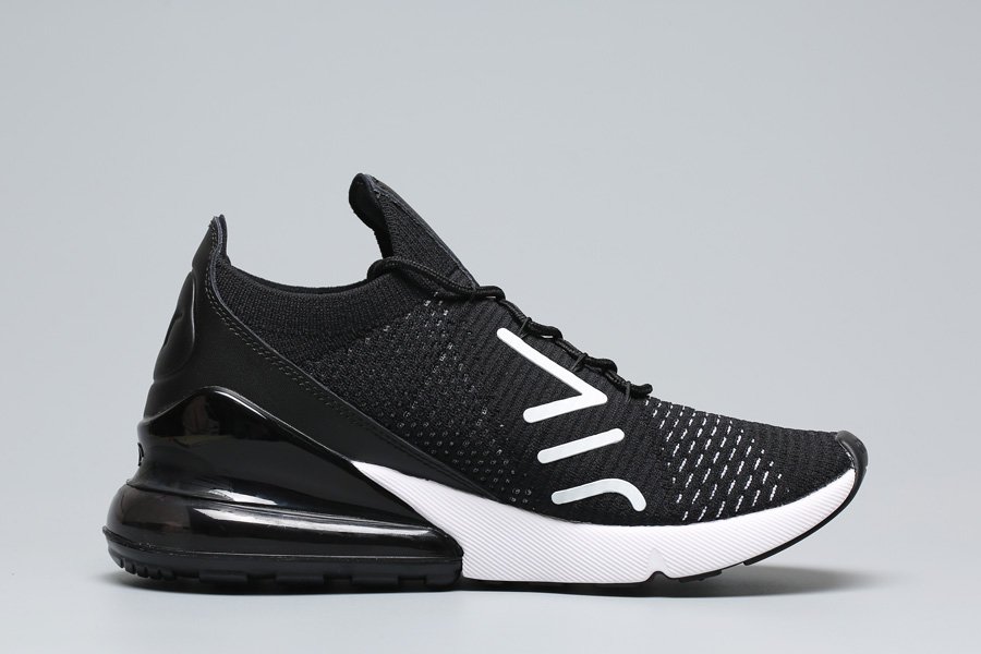 The Air Max 270 Flyknit Black White builds upon the contemporary range by replacing that neoprene upper with an even more flexible knitted material. This keeps the foot securely locked in place and promotes air flow to the foot. It’s all thanks to the open weave structure which rises high at the ankle, featuring an elasticated surround.