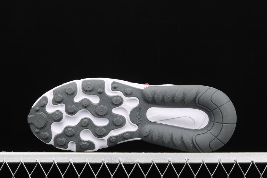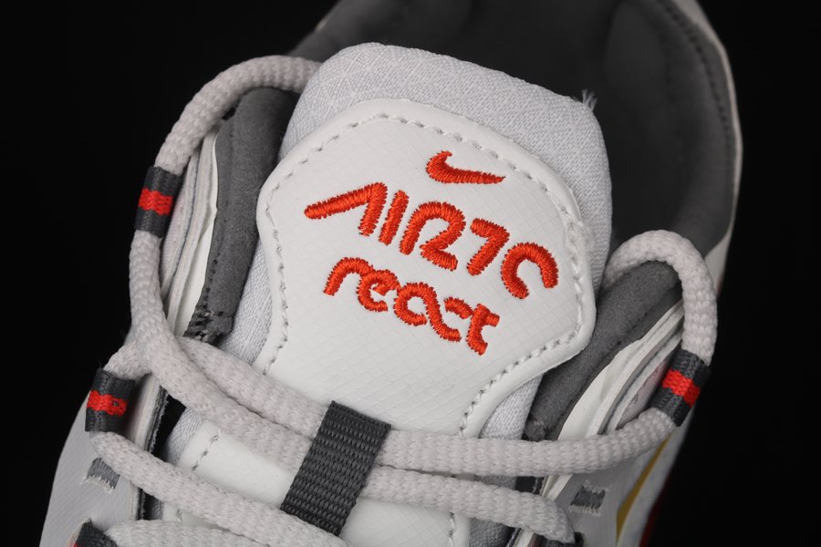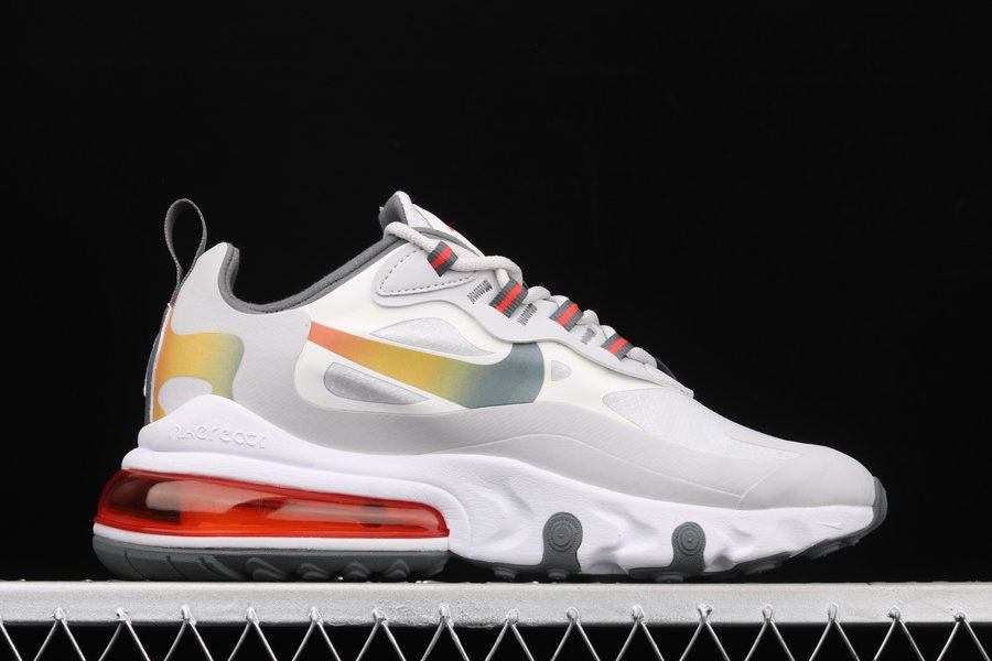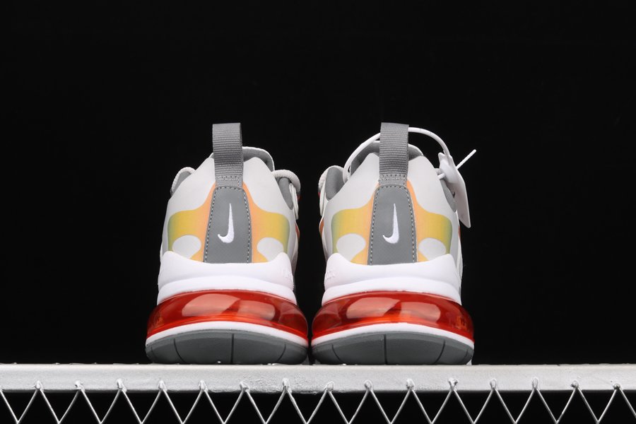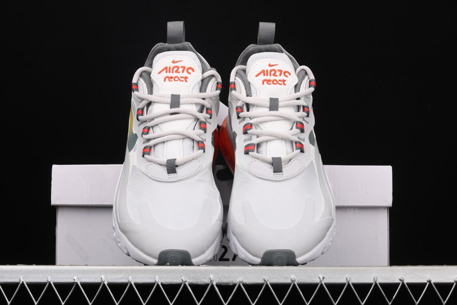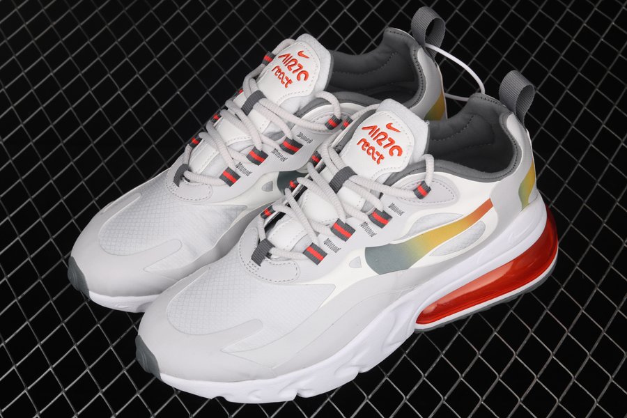 The Nike Air Max 270 React combines two signature cushioning systems – Air and React Foam – in the sole to provide comfort like no other. Adding a lightweight upper for good measure, this white pair is detailed with a gradient pattern across the Swoosh and heel and a striking orange Air bag.