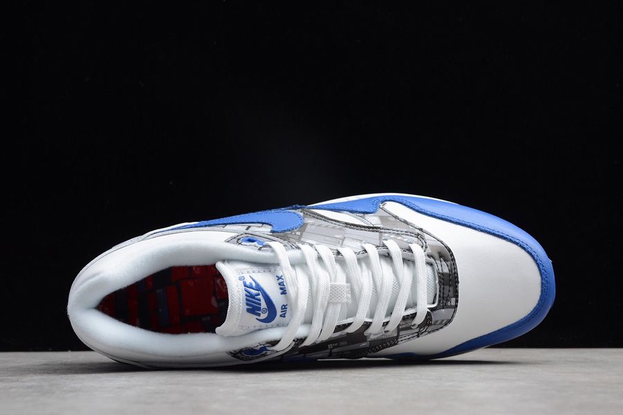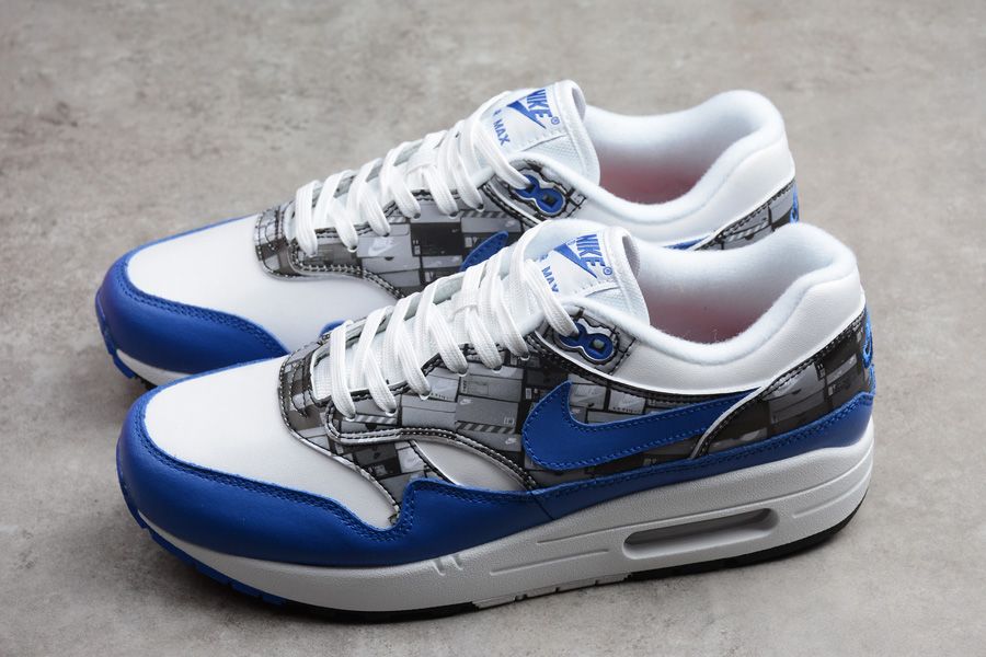 atmos x Nike Air Max 1 is a dashing thunderbolt blue for the “We Love Nike” pack! This collection sees many classic AM pairs with the Nike box-logo printed on the sidewalls. For this particular blue-bird, the box-logos are repeatedly printed on the wolf grey leather side panel.