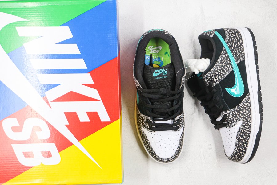 atmos x Nike SB Dunk Low “Elephant” Black White Jade Blue