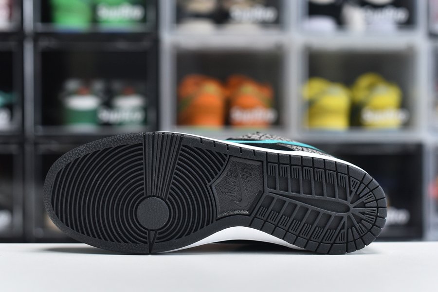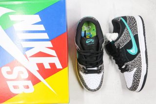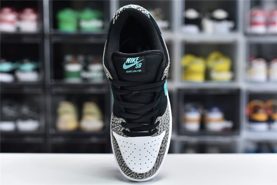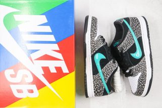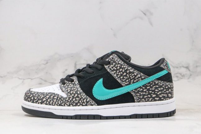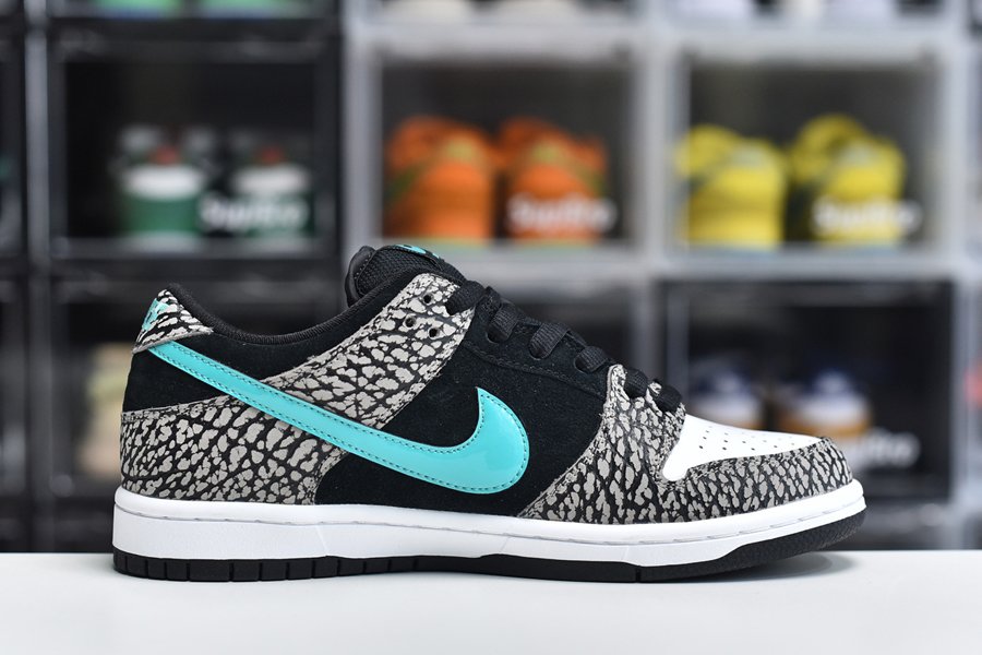 Notably inspired by the iconic atmos x Air Max 1 “Elephant,” the skateboarding silhouette borrows the same aesthetic as the aforementioned runner via white leather gracing the toe cap, followed by black for the side panels and ankle portion, and then the highlight Cement Grey elephant print overlays. Finally, teal Swooshes and tongue tags while resting atop a white midsole and black rubber outsole tops off the style.