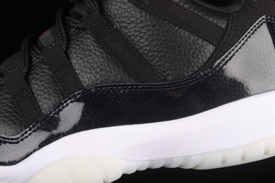 This pair derives from the popular Air Jordan 11 “72 10” which dropped back in 2015 as it notably commemorated the Chicago Bulls’ 1995-96 NBA Championship season where the team achieved a 72-10 regular season record and Michael Jordan won season MVP. Additionally, just like the aforementioned pair, this pair flaunts the same black/varsity red aesthetic. Overall, its glossy black patent leather mudguard is offset by a white midsole and milky translucent outsole with a special message on the inside tongue tag, “Inspired by the most historic season led by the greatest player ever” to round out the theme.