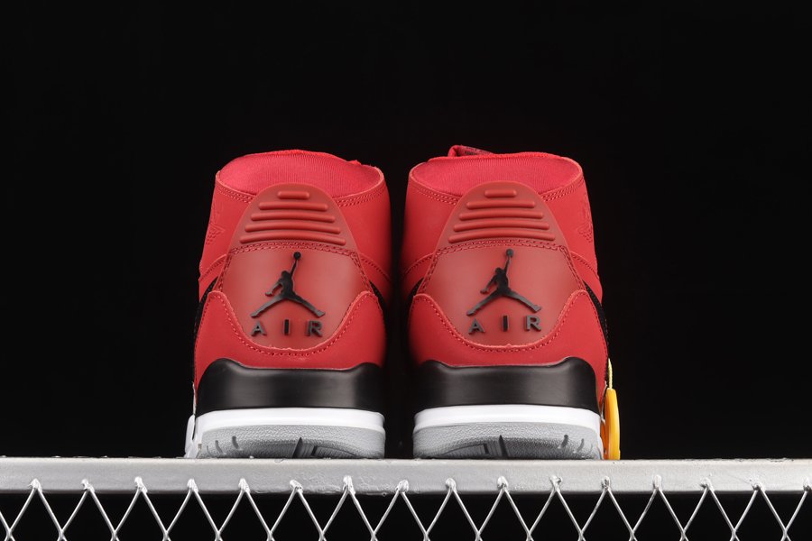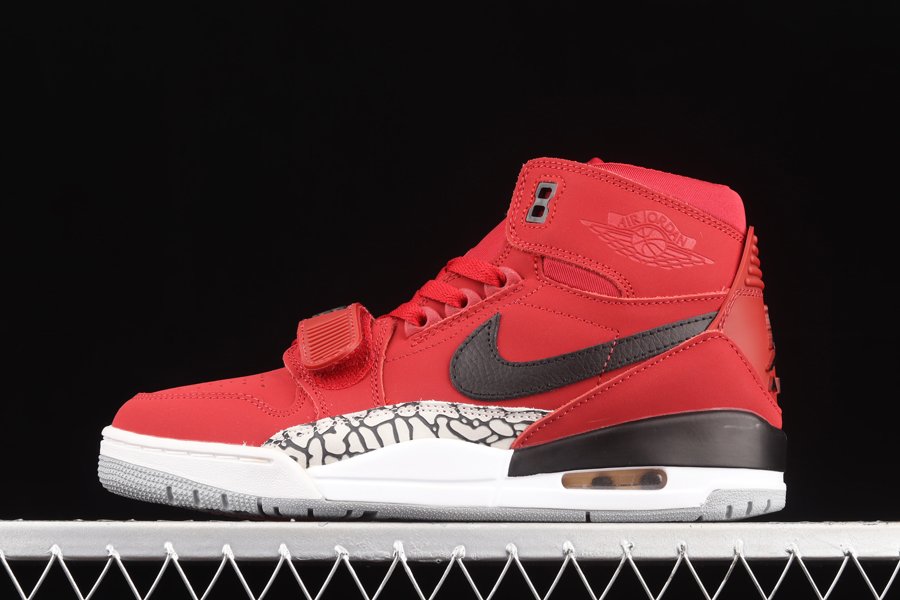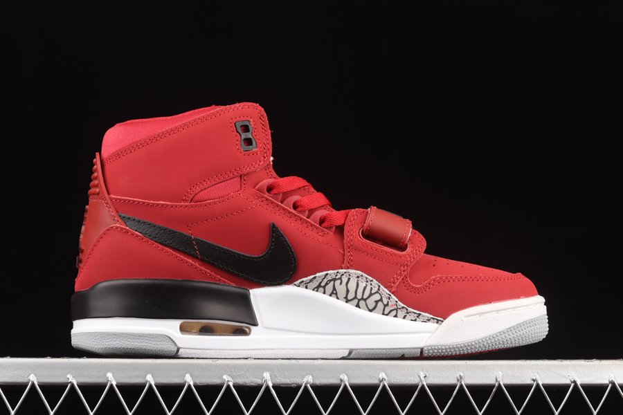 Covered in a bright shade of red throughout the upper, this Jordan Legacy 312 is constructed out of a smooth nubuck with nylon landing around the ankle. Complimenting Black is then seen on the leather Swoosh on the lateral side panel, the Nike branding on the tongue and midfoot strap, upper eyelets, and midsole. Black and grey elephant print on the midfoot, a white midsole, and grey rubber outsole wrap things up.