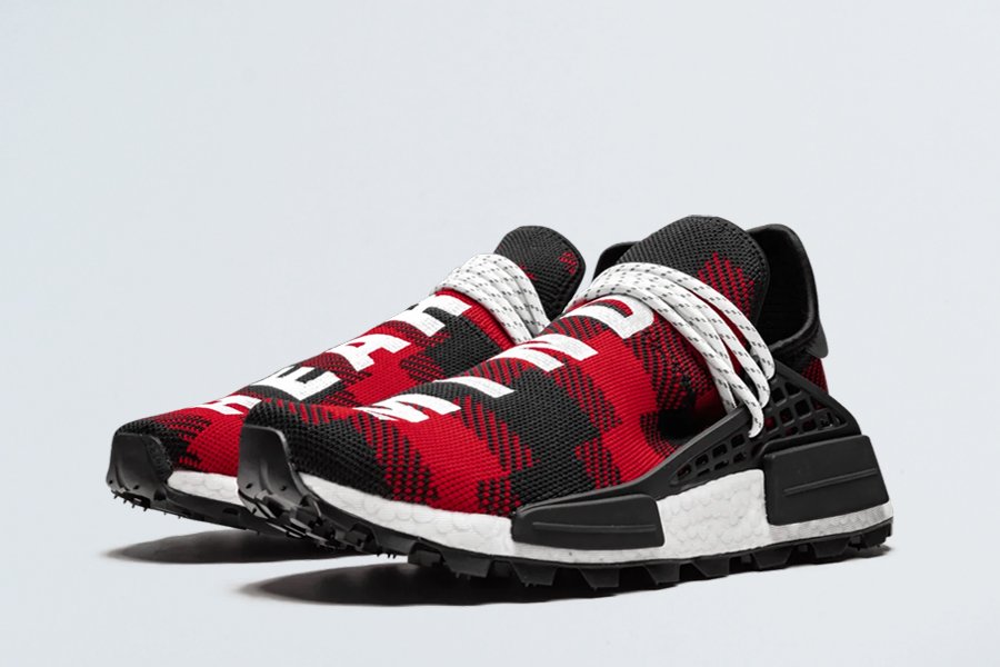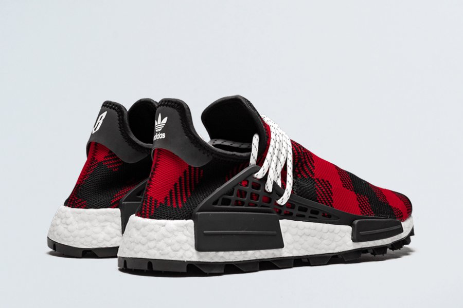 Utilising stretchy Primeknit, black and red check can be seen throughout the upper for a look that’s both simple and sophisticated. Thick white laces tie the shoe together through a unique cage system, while “HEART”; and “MIND”; text comes embroidered on the vamps. Of course, a full length Boost and Trail sole feature down below, offering the best in comfort and durability.