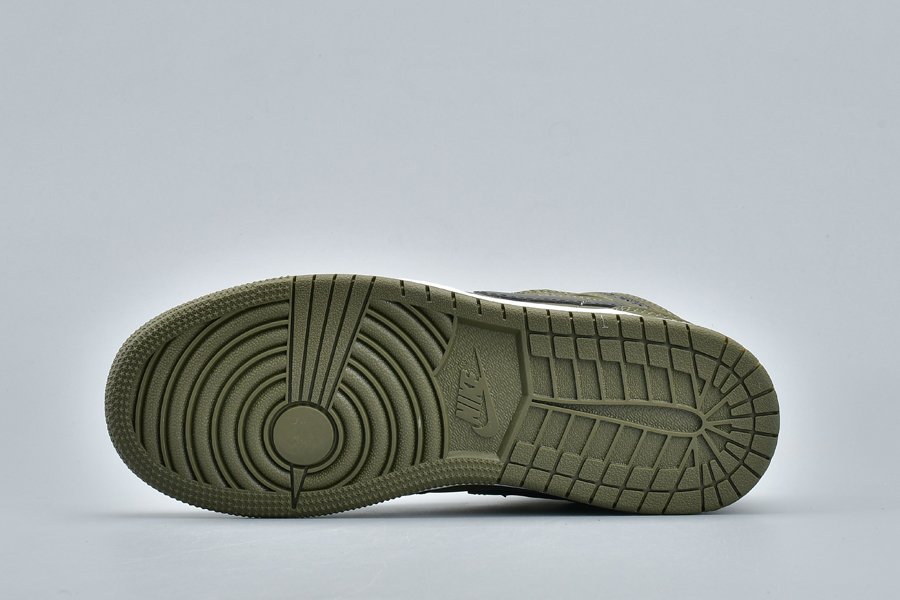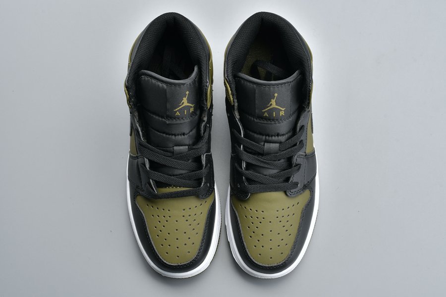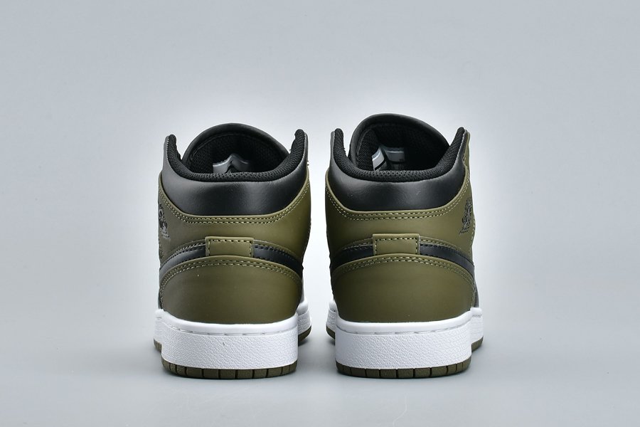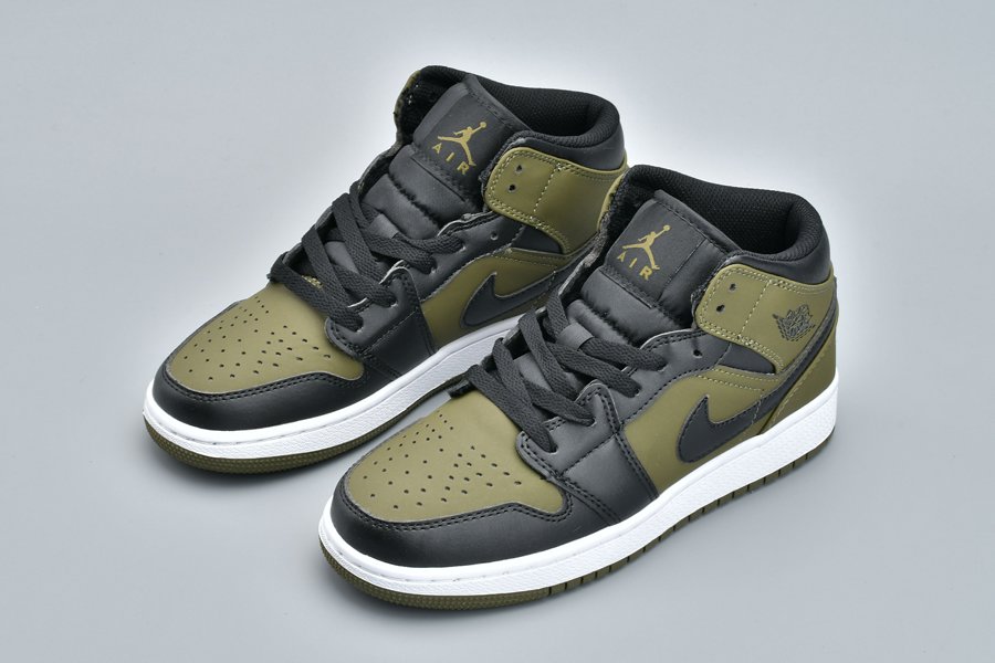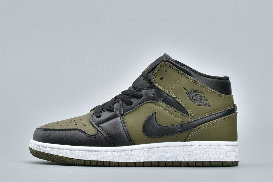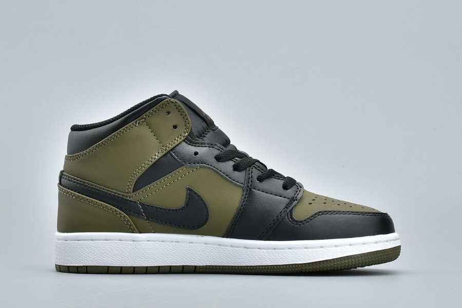 Big Kids Air Jordan 1 Retro Mid Olive Canvas/Black-White