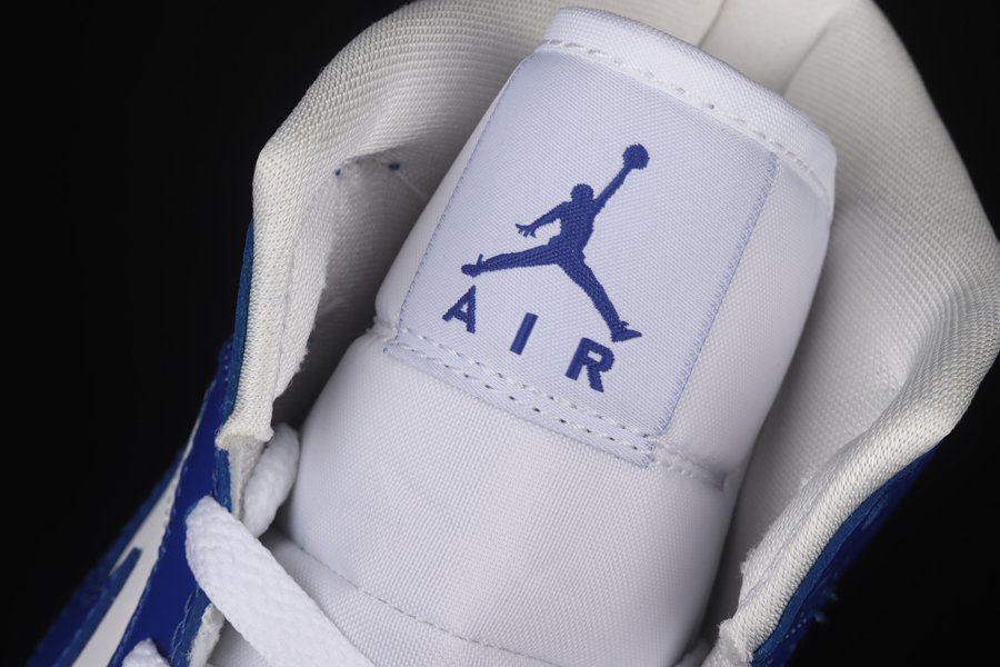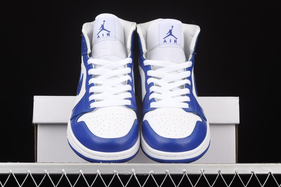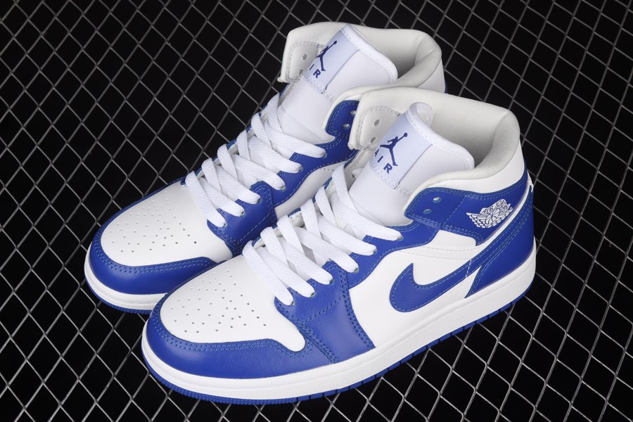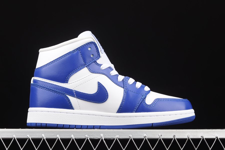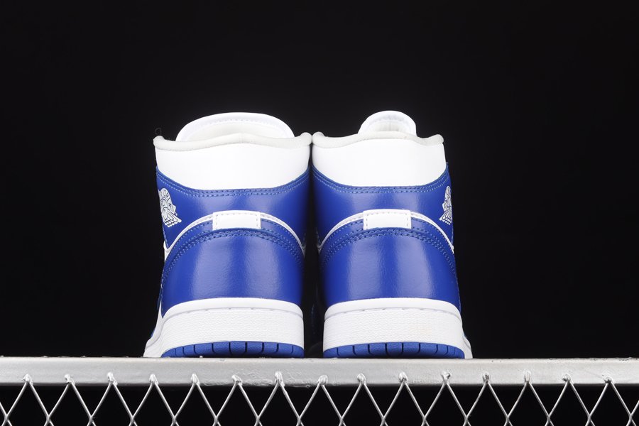 Working on a Jordan 1 Mid version, the smooth leather panels across the uppers are tinged in white contrasted with Kentucky Blue overlays around the toes, eyestays, rear panels, as well as the sportswear giant’s instantly recognisable Nike Swoosh logos on the lateral and medial sides.
