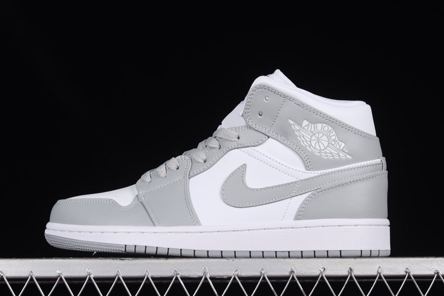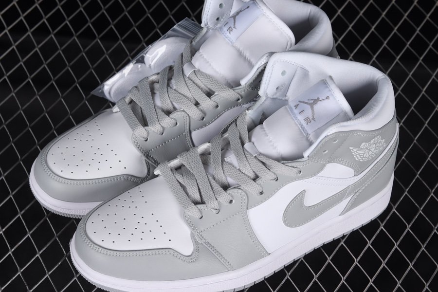 Equipped with a full smooth leather construction on the upper, this Air Jordan 1 Mid starts off with Sail hue on the toes, side panels, and the ankle/collar. For contrast we see the addition of grey all throughout the overlays, Swooshes, laces, and the Jumpman branding on the tongues and insoles. Sail Wings branding on the ankles, white rubber midsoles, and grey rubber outsoles cap off the look on this Air Jordan 1 Mid.
