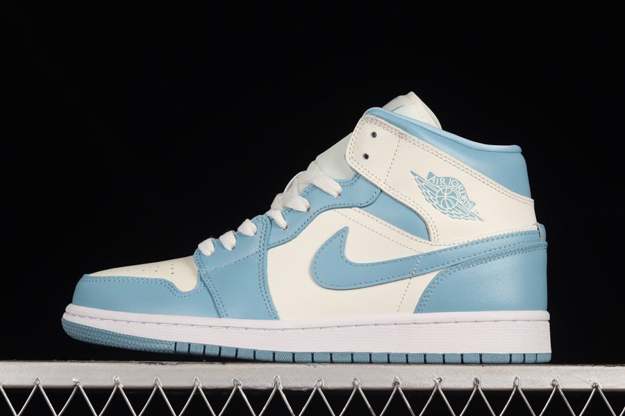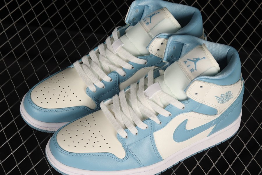 This time around the fan-favorite color scheme paying homage to Michael Jordan’s alma mater (University of North Carolina) gives the Air Jordan 1 Mid White leather side panels, toe boxes and ankle flaps that are then contrasted by the Powder Blue hits on the overlays, Swooshes, lining, branding, and rubber outsole. Additional hits of White on the tongues, laces, and midsole round out the main features of the sneaker.