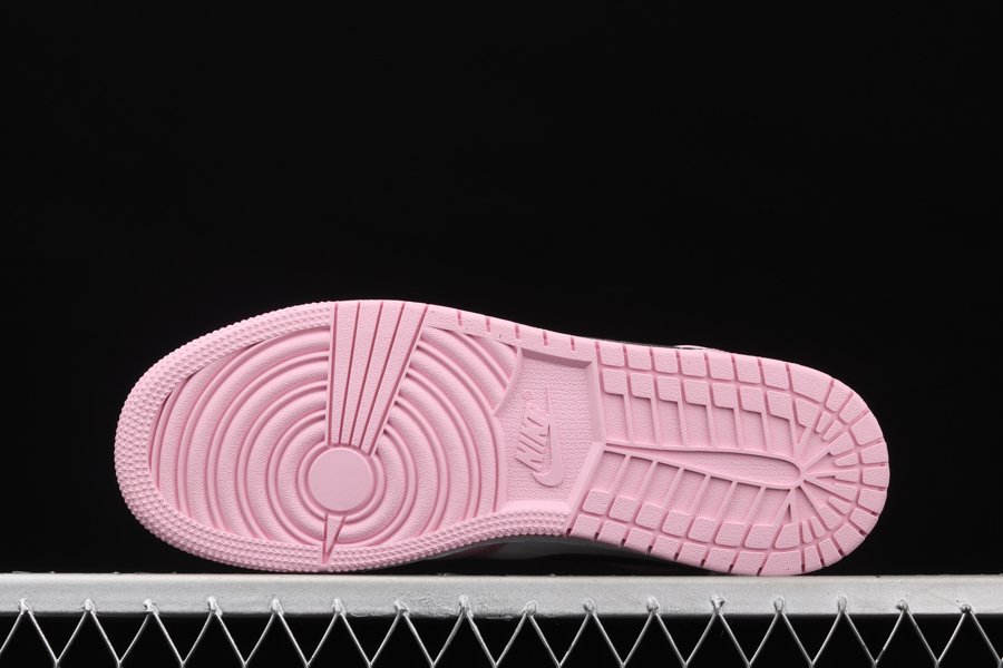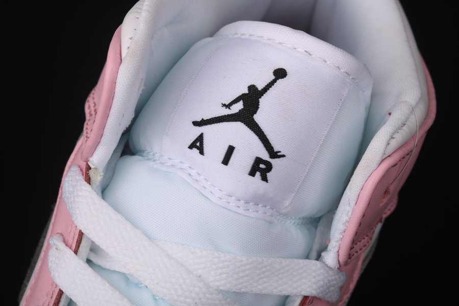 A relatively simple pair, the all-white leather upper extends from the toe to the mid panel and to the collar, with soft pink overlays throughout. Sitting prominently at the midfoot is a stark black Swoosh that provides the pair with its most striking feature. Elsewhere you’ll find a white nylon tongue popped with black branding, white Wings motifs at the ankle, and a white and pink rubber outsole.