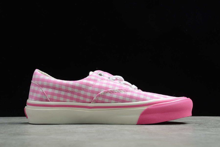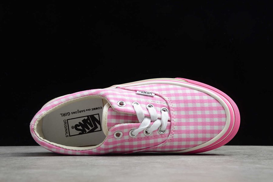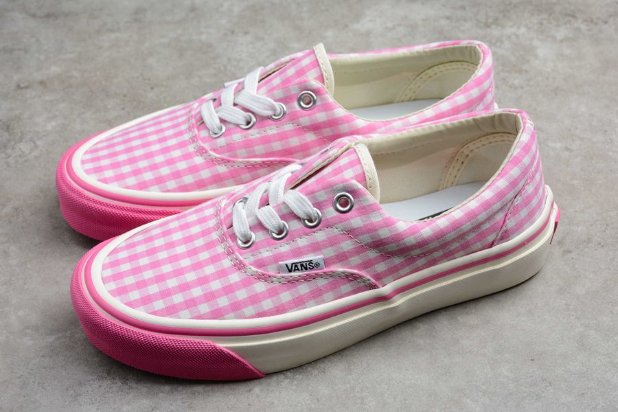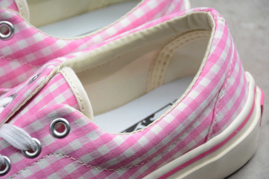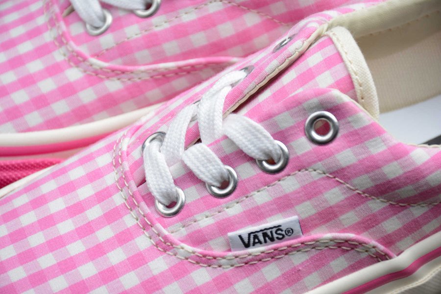 The sneakers are modelled after Vans’ OG Era LX shoes, with a cotton canvas upper and a high midsole. The CDG GIRL Vans Gingham Check has a pink-and-white gingham pattern that spans the body of the shoe and a matching pink ‘Wafflecup’ outsole. Pair it with a pastel outfit for an easy soft girl look on your next picnic.