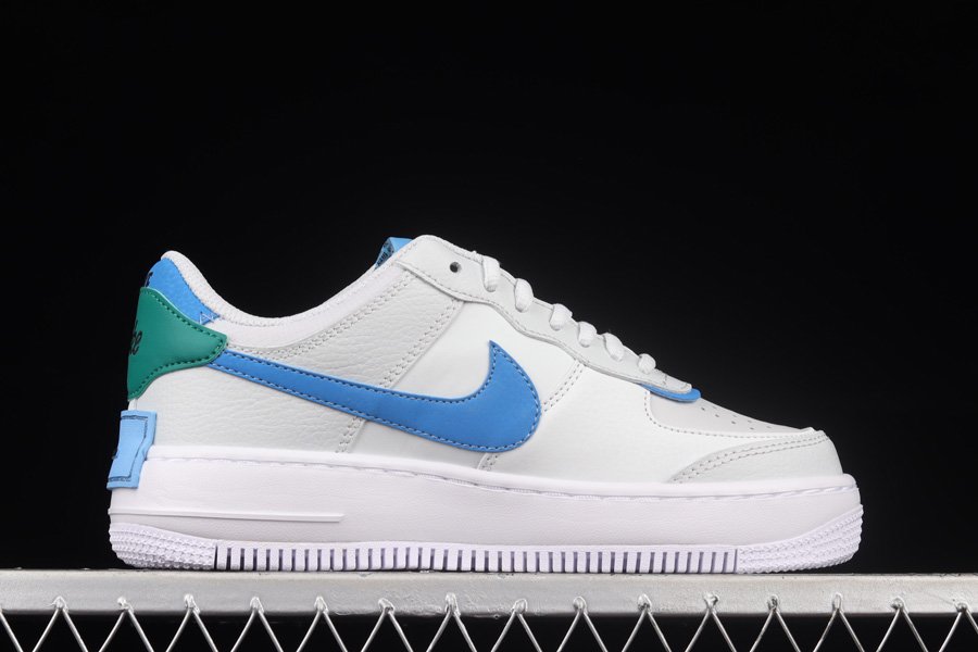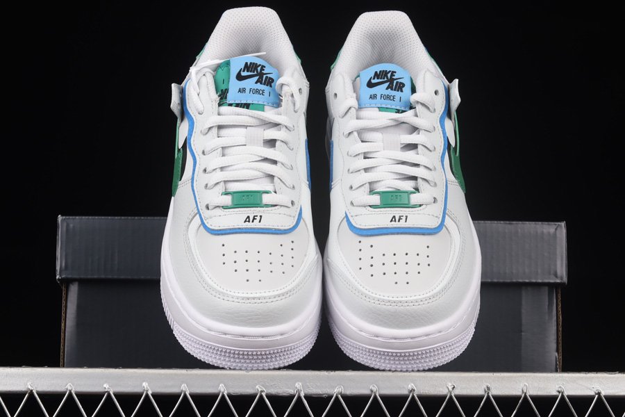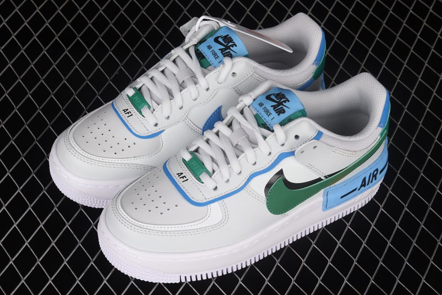 A new clean offering of the Nike WMNS Air Force 1 Shadow is on deck today with this pair seen up. Starting off with a Photon Dust and White smooth and tumbled leather construction on the upper, this women’s-exclusive rendition of the model is the hit with green and blue accents on the double layer detailing that hits the medial and lateral Swooshes, heel tabs, and eyestay. More pops of color hit the lace dubraes, tongue tags, and the midsole overlay. A thick white rubber sole unit down below caps off the look on this Nike WMNS Air Force 1 Shadow.