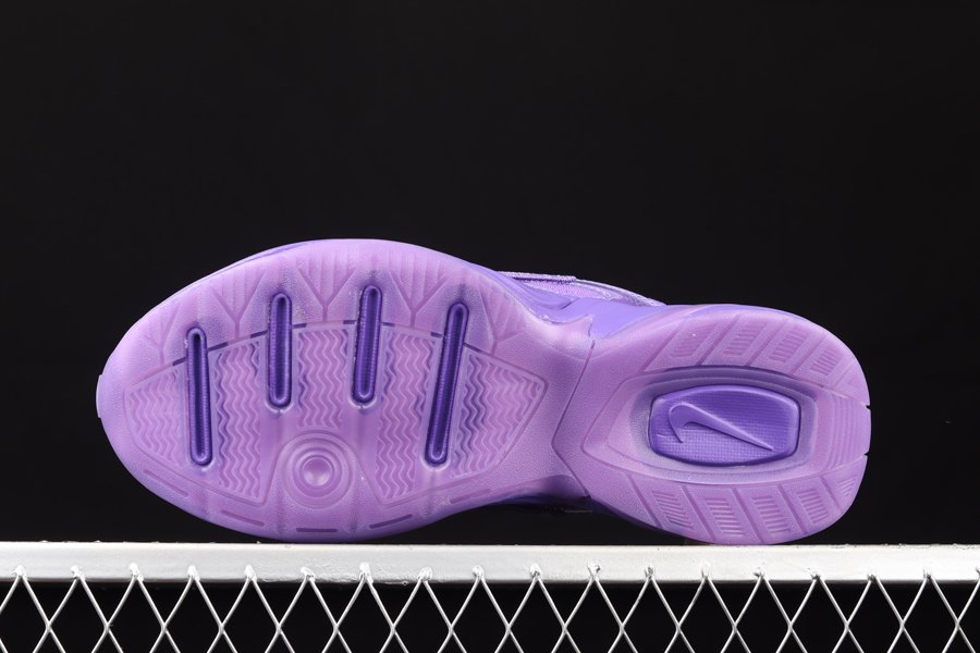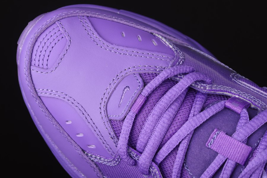 It comes dressed in Hyper Grape throughout. Purple runs across the upper while translucent plastic lands on the mid-foot overlay. A Purple shiny piece is also seen on the heel clip while Purple runs across the midsole and translucent outsole to complete the look.