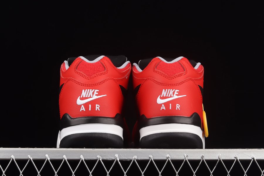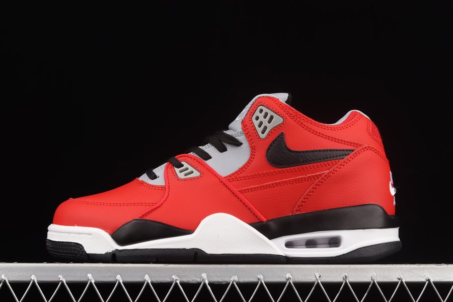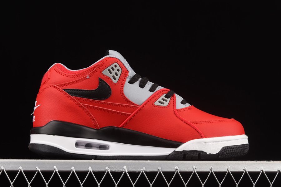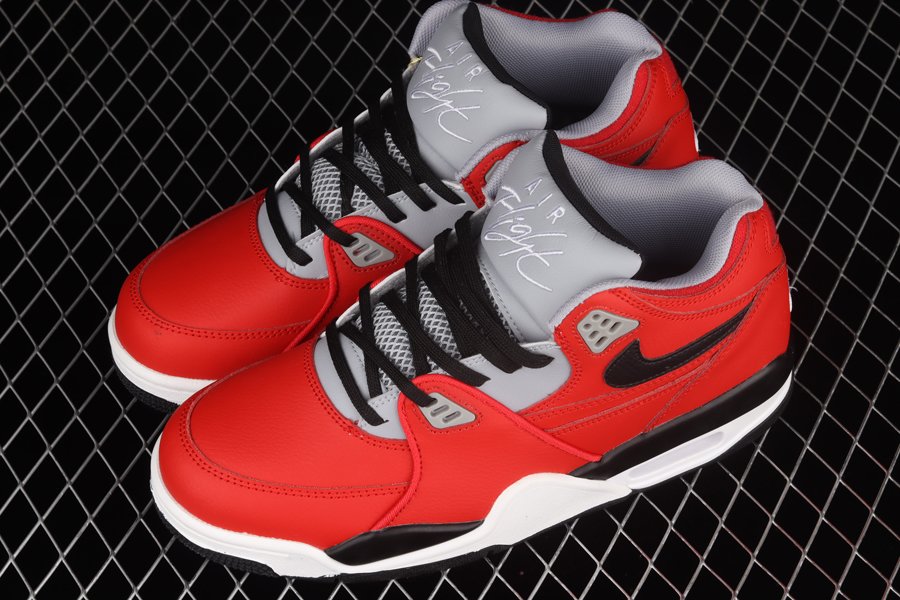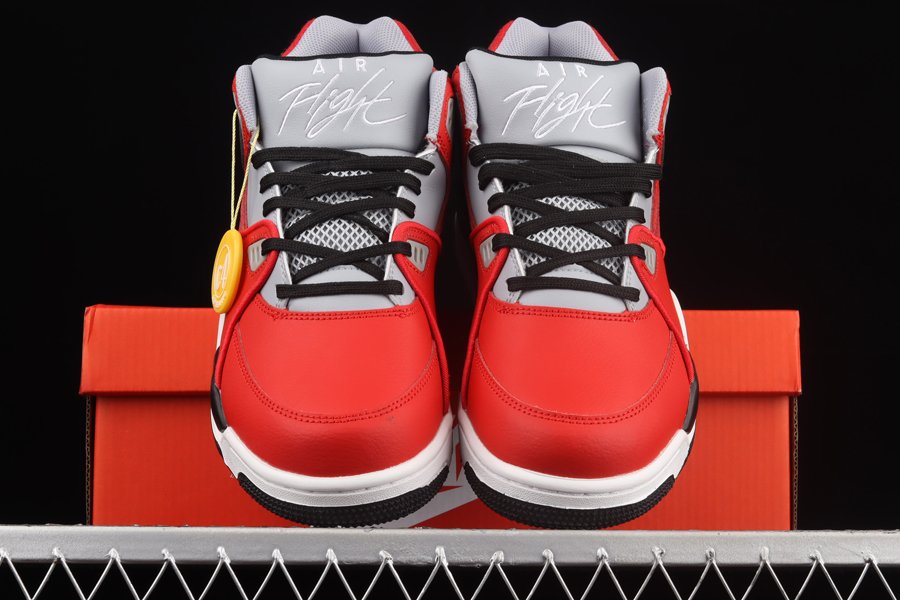 Starting at the top, white “AIR Flight” branding is embroidered over the shoe’s tongue over a smooth “Wolf Gray” leather base. Breathable mesh textiles appear along the rest of the tongue, contrasted by black laces that match the shade of the side Swoosh found near the rear quarter. “Nike Air” is etched onto the heel counter, while the rest of the body embraces a bold “University Red” palette in full-grain leather. All of these details sit atop a tri-toned midsole, paneled with black near the mudguards, white around the forefoot and, finally, gray at the heel, completed by a translucent Air Unit bubble that offers a small window to the shoe’s essential cushioning system.