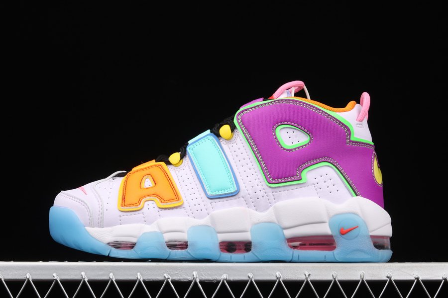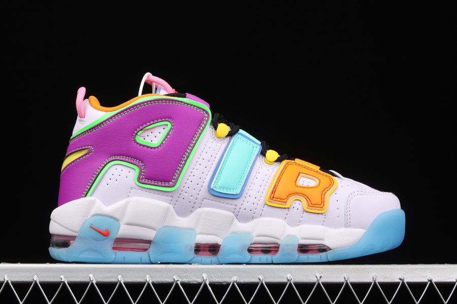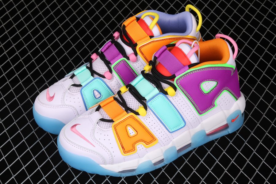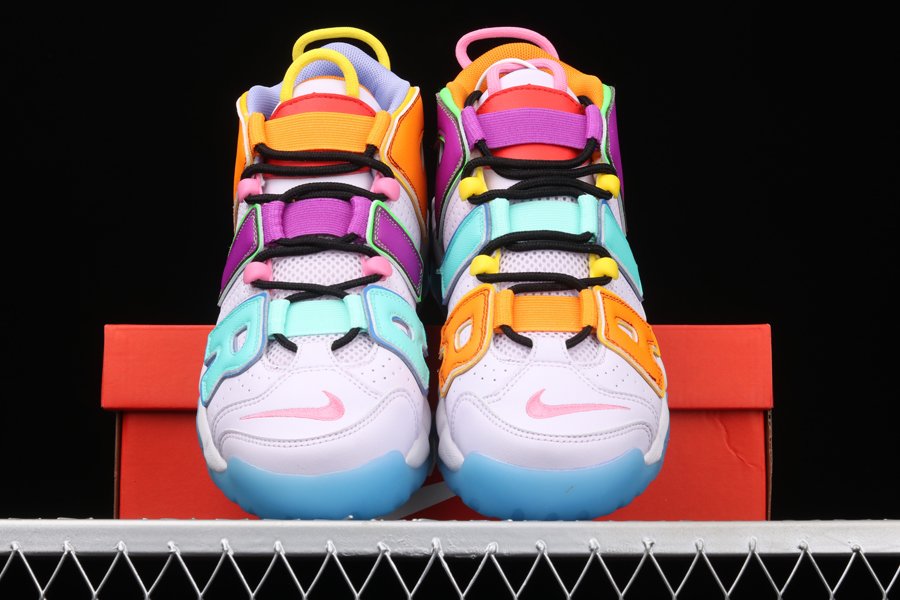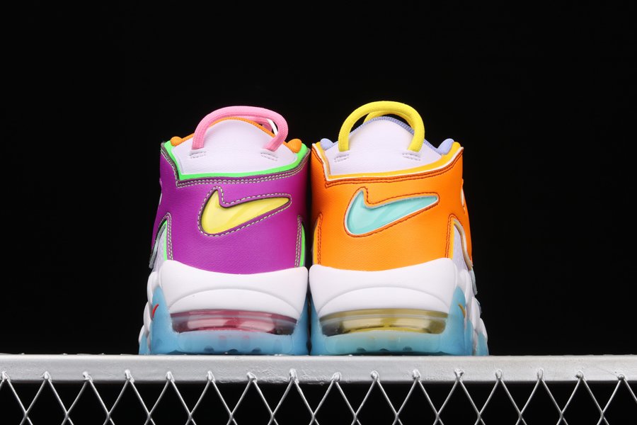 It’s quite often that kids get color when it comes to sneaker releases – and this Nike Air More Uptempo “Mix-n-Match” seemingly couldn’t decide on which hues to use, so they decided on using all of them. But these kids-exclusives aren’t just colorful, they’re also executed with some interesting materials, namely canvas and icy blue outsoles. While mismatched from foot to foot, both start out on a Barely Grape canvas base and rest atop white midsoles and the aforementioned icy outsoles. It’s gold-branded red tongue tags, black laces and grape liners are the last consistencies before the displacement begins. Letter overlays arrive in aqua, orange, purple, each with contrast stitching and alternate underlays of blue, yellow, and green. Pulls are either pink or yellow (to alternate with their respective eyelet plastics), whilst liners opt for orange and lavender. Air supports, too, change colors between feet, with the left settling on red, and the right on yellow – each of which is matched in color on the lateral Swoosh branding. The pair is then complete with a set of rear jewel Swooshes in yellow and aqua respectively.