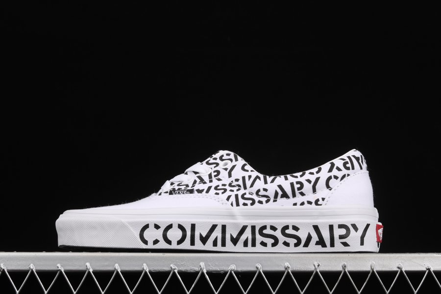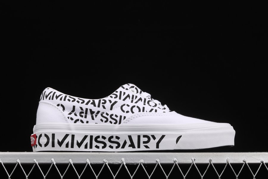 The shoes feature an all-white canvas design, with Commissary logos printed throughout the uppers, as well as on the foxing scene. The ankle collar features a printed message. One shoe reads “You don’t have to go home”, and the other says “but you can’t stay here”, which sounds familiar to anyone who stays at the club until the lights start to come on.