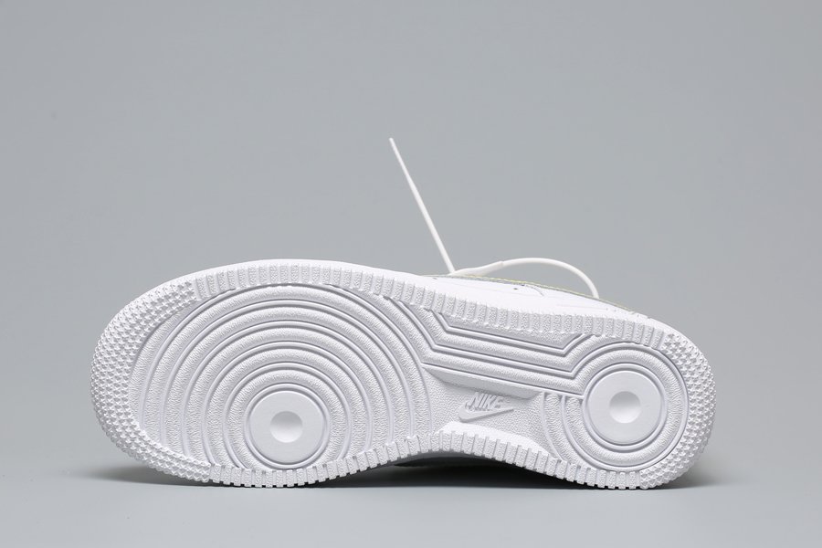 Showing a very minimal look, these simplistic sneakers have a chunky white rubber sole and the shoelace tab to match in a bright white. The “Air” logo sits towards the back of the sole as it always has done.