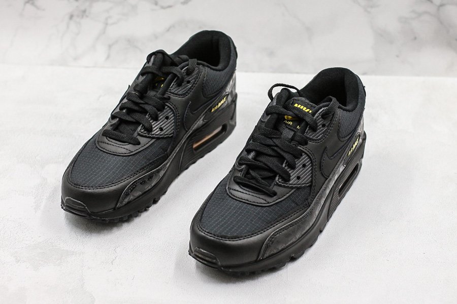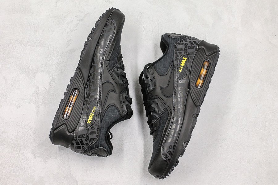 Nike Air Max 90 is last spotted in a rugged “olive/black” palette, this new rendition spotlights a clean black base fashioned from complementary textiles with creative branding cues spotted along the bottom area.