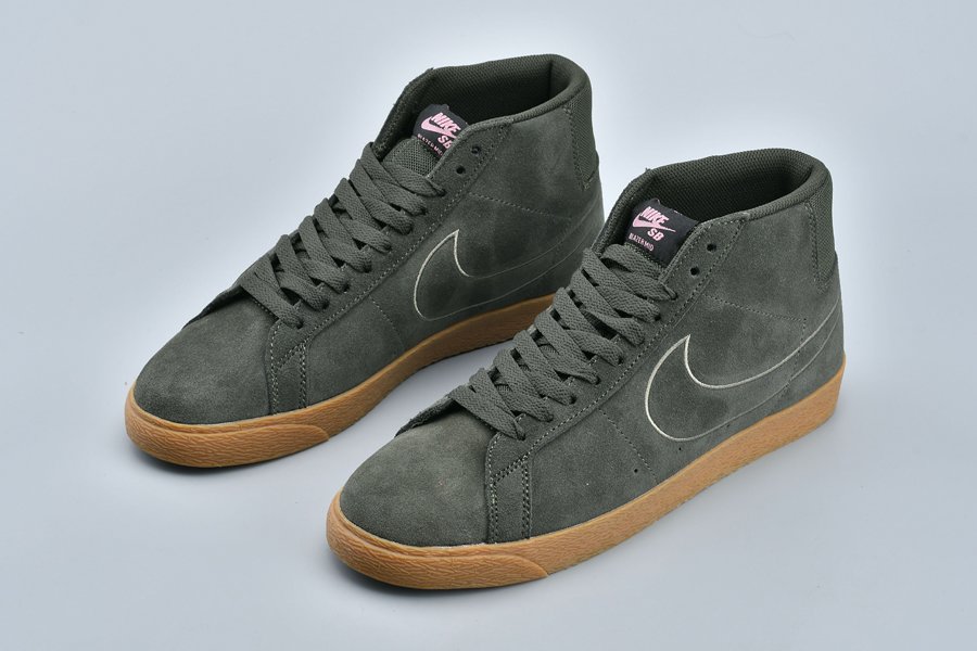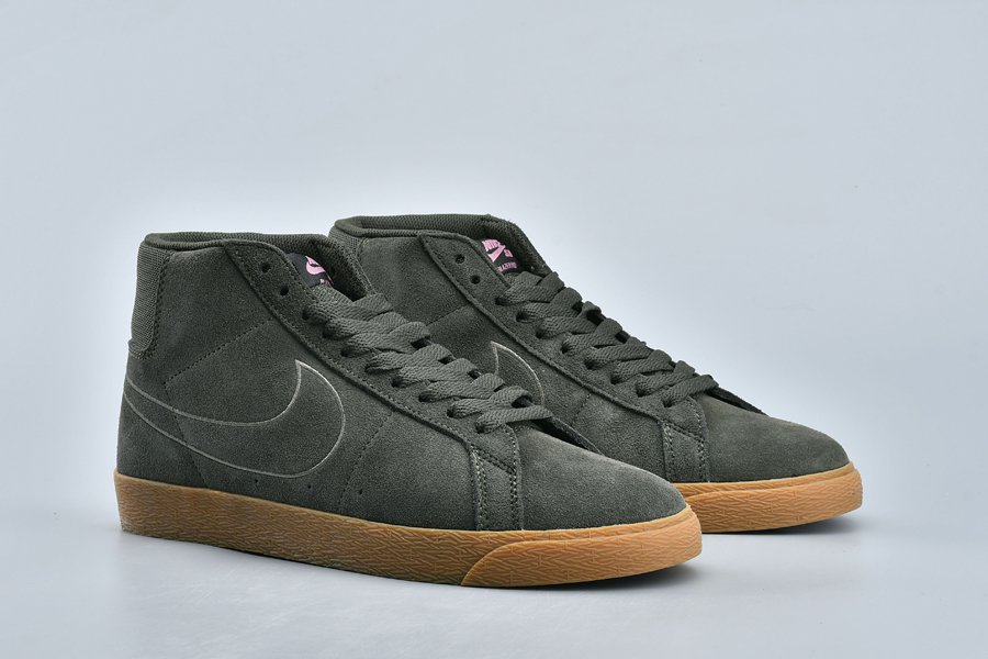 This Nike SB Blazer features a Sequoia and Medium Olive color theme. Olive Green runs across the uppers while constructed with suede. Following we have mesh applied to the tongue. Other details includes Pink accents while Gum lands on the midsole and an Olive outsole completes the look.