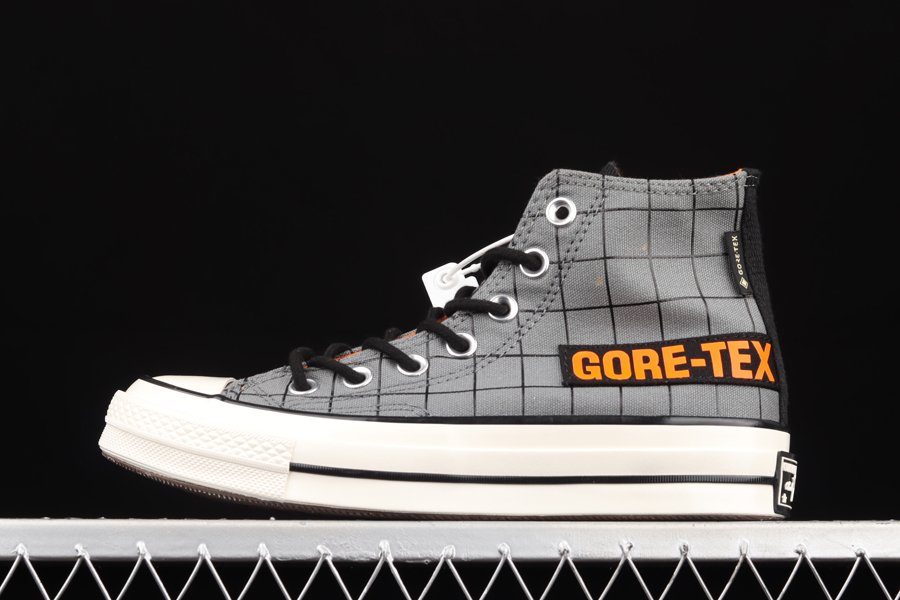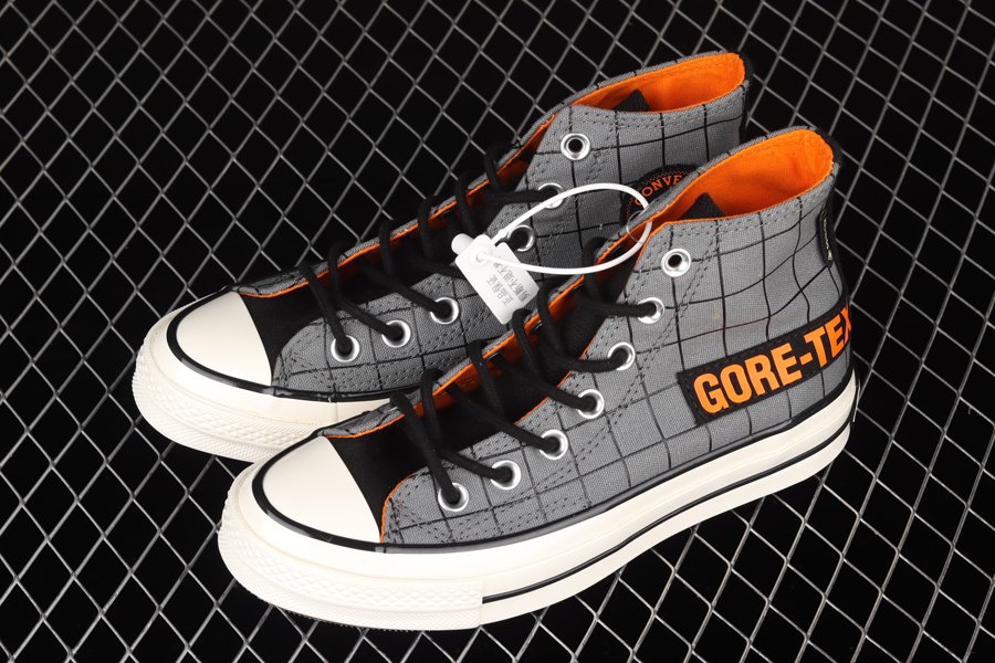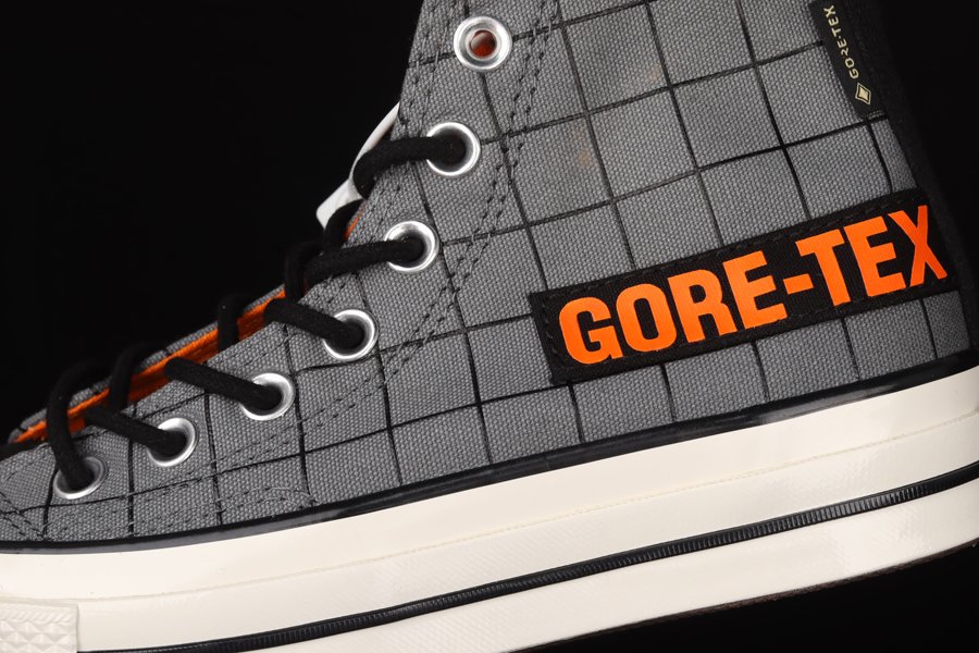 The Chuck 70 GORE-TEX features a premium, waterproof canvas build and moisture-wicking laces. The all-over grid print brings in outdoor-inspired style, with a canvas GORE-TEX label on the side in a nod to Everest expedition suits. Complete with Chuck 70 staples, like a vintage All Star ankle patch and license plate, plus extra cushioning.