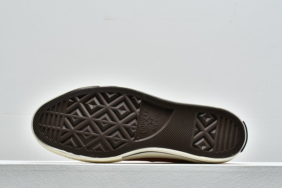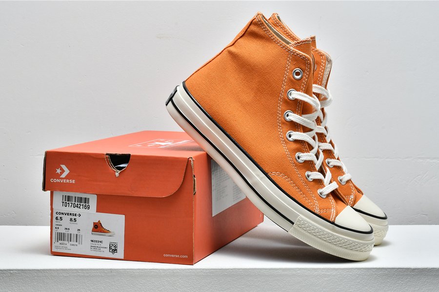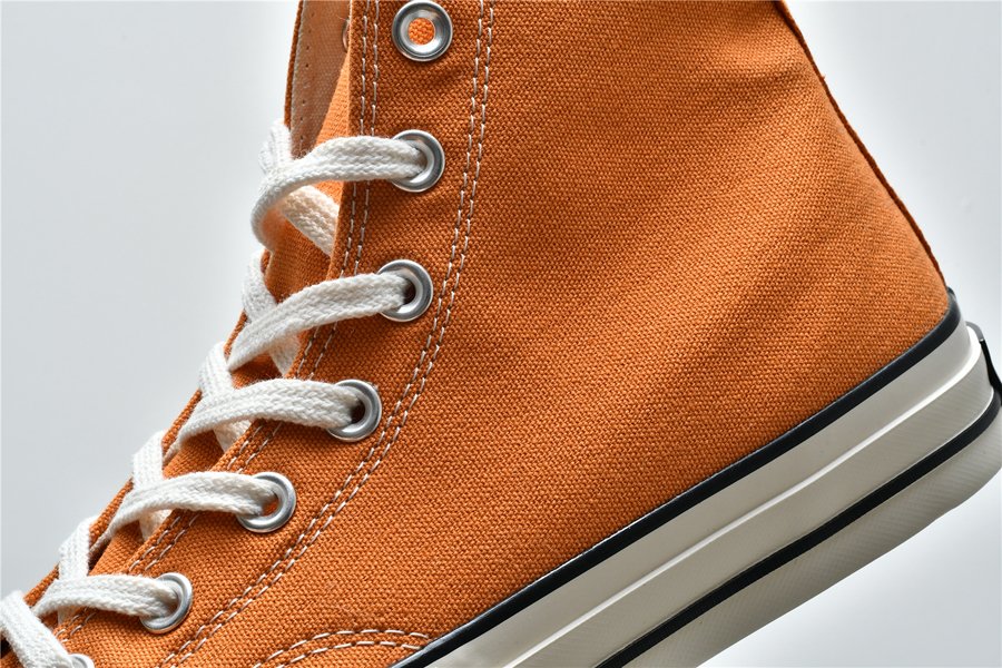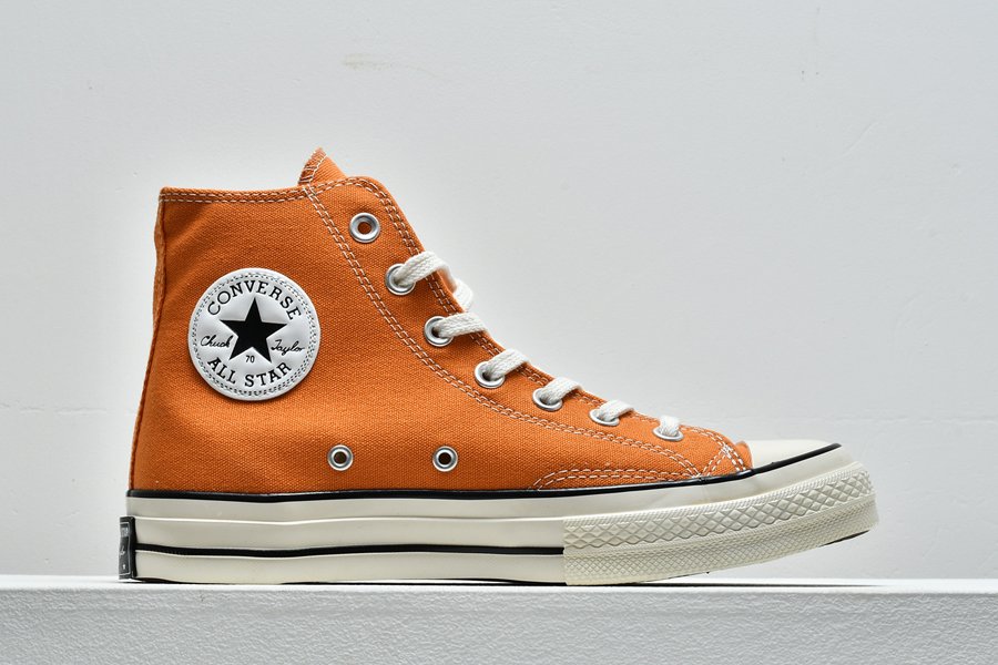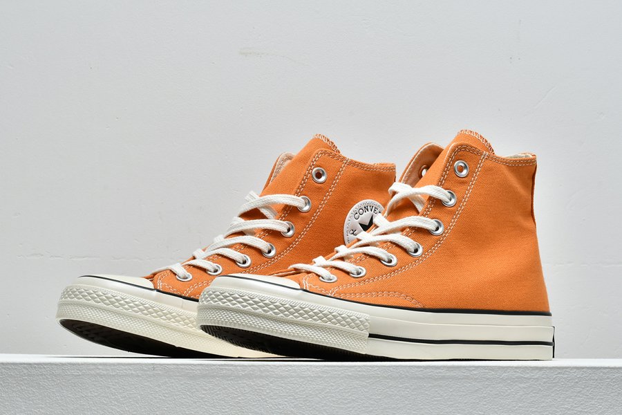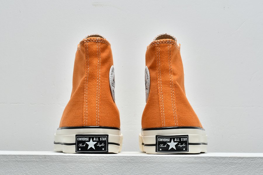 Heritage and contemporary tooling come together to reimagine the 70s All Star hoops classic in the Chuck 70. Rendered in durable canvas, this retro-inspired ‘Orange’ Chuck Taylor sports a high-top upper secured by traditional laces. A contrast toe cap and higher foxing recall the look of the original, while an archival star patch and heel bumper imbue the shoe with unmistakable style.