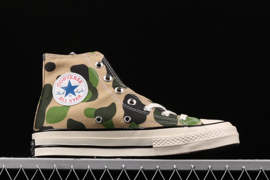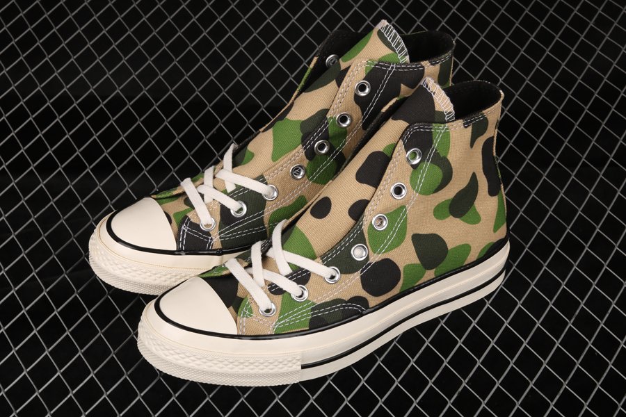 Direct from the Converse archives, the Chuck 70 featured the first Converse prints, ever. Inspired by off court prep wear the Chuck Taylor 70 Hi Shoes are about the daring details, this beige and black colourway offers a great looking, camo effect style, letting you stand out from the crowd.