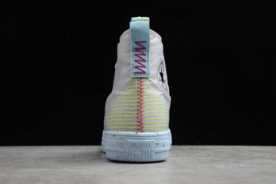 It’s simply a moody and dusty looking canvas boot with some bright neon hints. The Volt lime embroideries on the heel, collar, tongue tab, and insole jump out boldly. Similarly, you can also spot some tangy orange and pastel blue pops. These party-popping colours make the grey canvas uppers very exciting and season-friendly. On top of that, the flexible walls make sure your feet are snug and comfy during any season. Finally, the classic branding patch on the sidewall and the and the Nike Crater foam midsole finish the design.