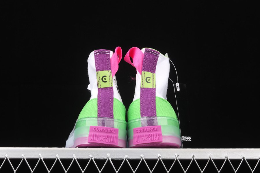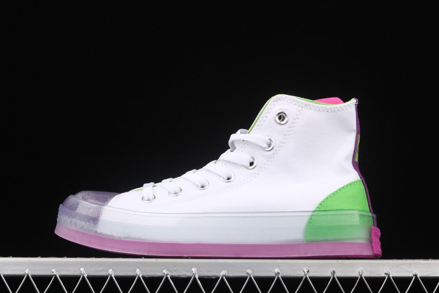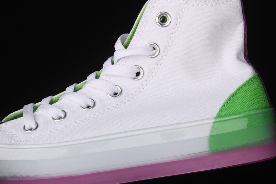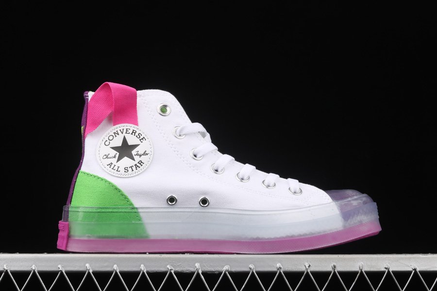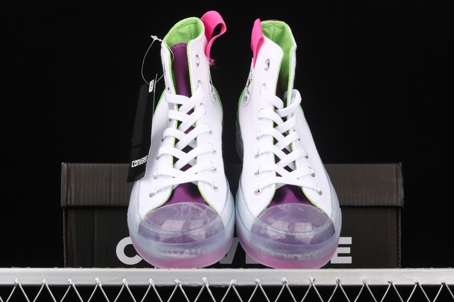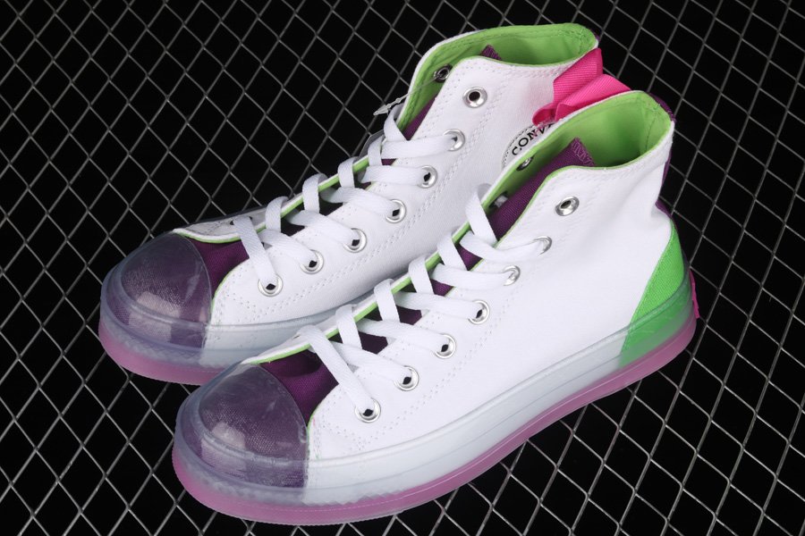 Your favorite sneakers, made more comfortable. The Chuck Taylor All Star CX updates the classic with revolutionary CX foam for lightweight support and comfort. Designed to move with you, stretch canvas forms to your foot, while pull tabs allow for easy on and off. This edition goes bold with transparent details and pops of vibrant color, inspired by neon lights and summer nights.