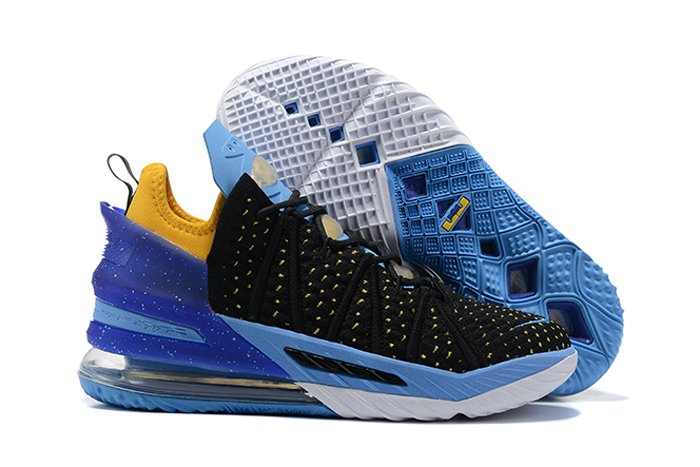 The Nike LeBron 18 ‘Lakers Heritage’ takes inspiration from the NBA franchise’s origins in Minneapolis, Minnesota, the state colloquially known as the ‘Land of 10,000 Lakes.’ The sneaker’s color scheme reflects the early road uniforms of the Minneapolis Lakers, highlighted by a powder blue tongue and a flexible collar in University Gold. Matching yellow accents are interspersed throughout the black KnitPosite 2.0 upper. The sneaker rides on a Cushlon midsole that works in tandem with a full-length Zoom Air unit, which is partially housed within a visible Max Air unit under the heel.