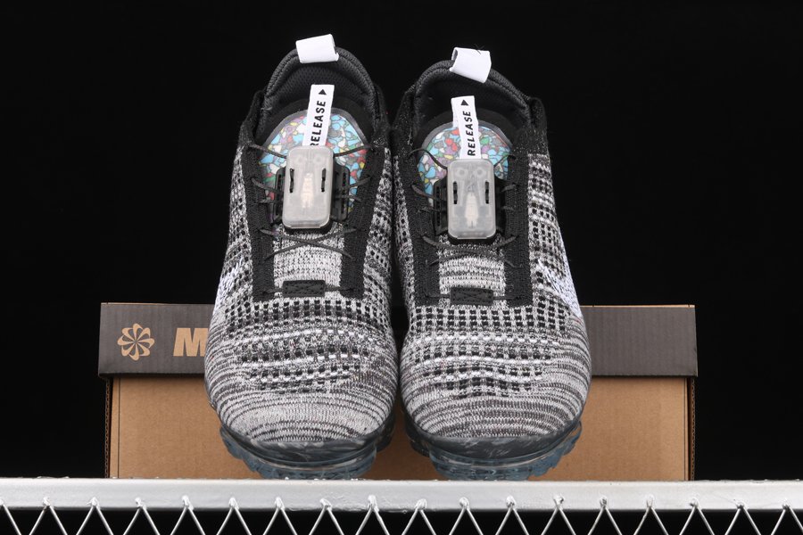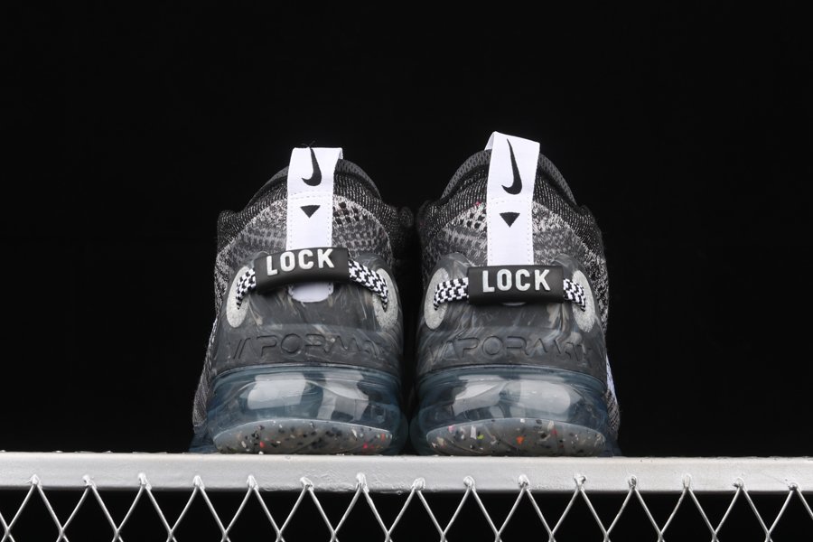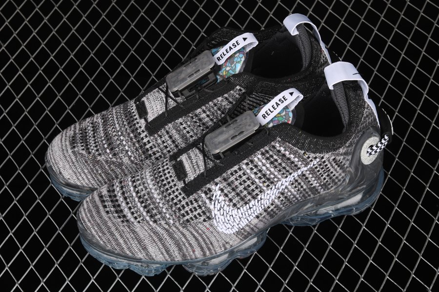 The Nike Air VaporMax 2020 Flyknit ‘Oreo’ pairs airy comfort with a sustainable build. The sneaker’s Flyknit upper is constructed from recycled polyester in a complementary blend of black, white and grey fibers. The same neutral tones are applied to the TPU heel counter, which works in tandem with convenient FlyEase lacing for a secure, stable fit. Responsive cushioning comes courtesy of a full-length translucent VaporMax unit, made in part with recycled TPU.