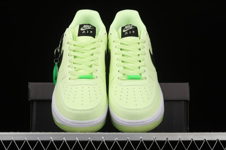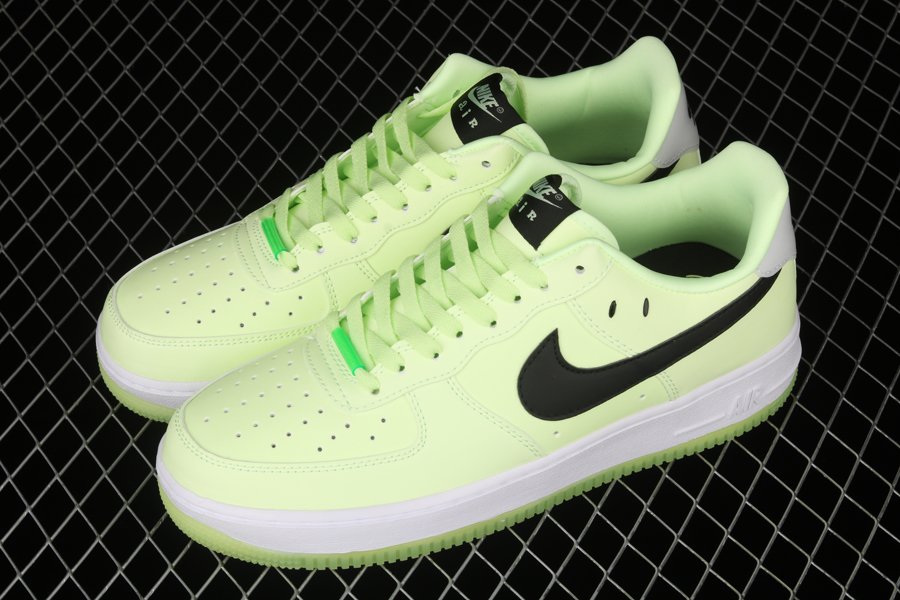 This pair sees its smooth leather uppers dipped in Barely Volt. A black side swoosh lays atop, with two plastic elements placed above as eyes to recreate the Swoosh-smiled mascot popularized by Sean Wotherspoon. The usual metal lace dubrae has been swapped out for a neon green acrylic tube with “AIR FORCE 1” printed in black. Changes to customary logos are also found on the tongue label and heel tab, in which the “AIR” texts opts for a curlier, whimsical font. To amp up the fun factor, the heel tab uses a translucent rubber material that glows in the dark. The green outsole embraces translucency as well, as the iconic happy face peeks from underneath. The character appears once again in the insoles, finishing the cheery design.