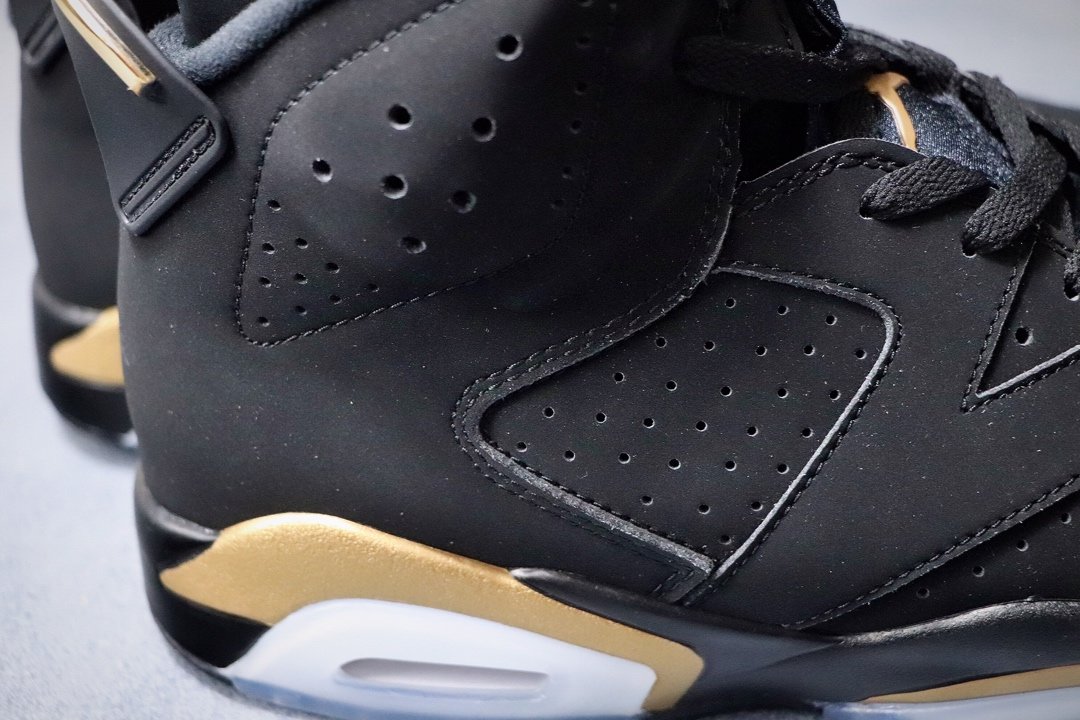 Noted to incorporate the same color scheme of black and Metallic Gold, as seen on the 2006 pair, the stealthy hue adorns its nubuck construction, followed by more Metallic Gold accents placed on its branded areas, heel tab and throughout the midsole. Finally a cream-like, icy translucent outsole tops off the design.