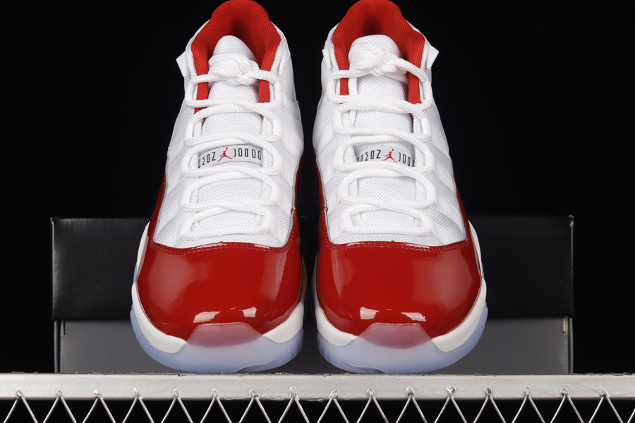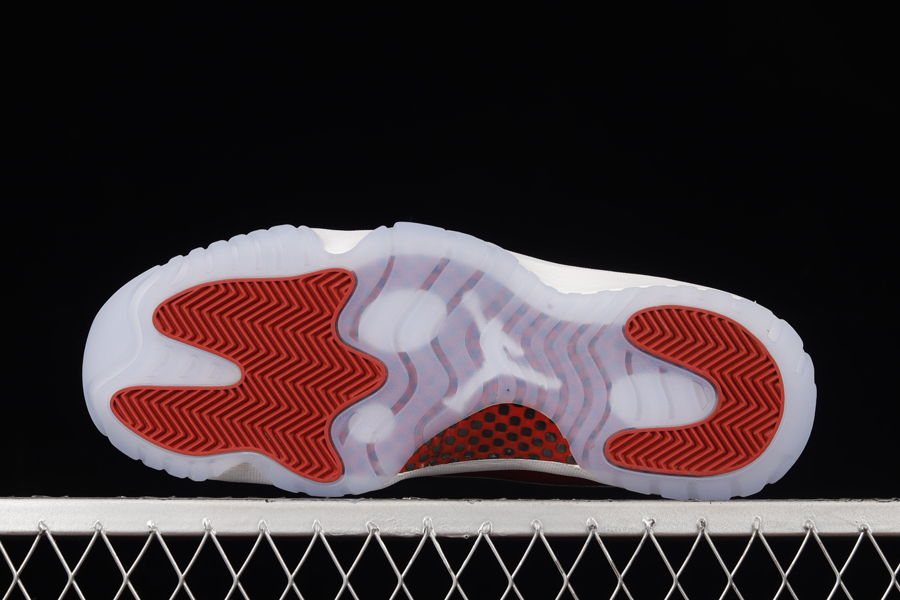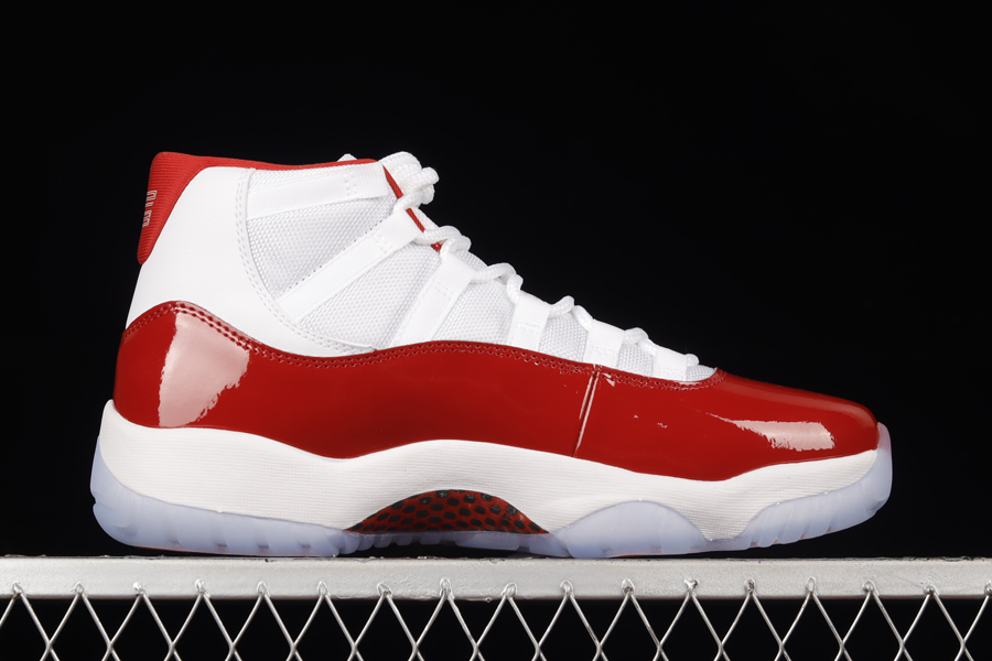 This new Air Jordan 11 colorway starts off with a White nylon mesh construction on the base of the upper with tonal detailing seen on the leather heels, tongues, rope laces, and midsole. The defining Varsity Red is then placed on the signature patent leather mudguard, inner liner, heel, and the Jumpman logos on the ankles. White “23” branding on the heels, black and red branding on the tongues, and icy blue translucent outsoles with red detailing cap off this Air Jordan 11.