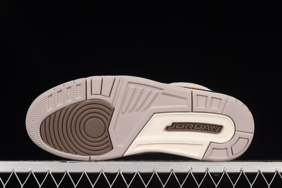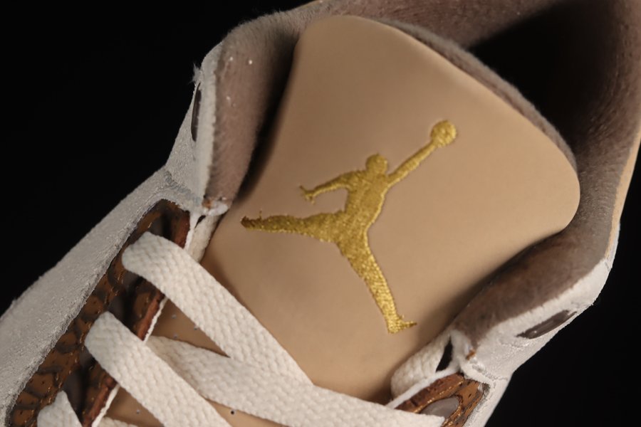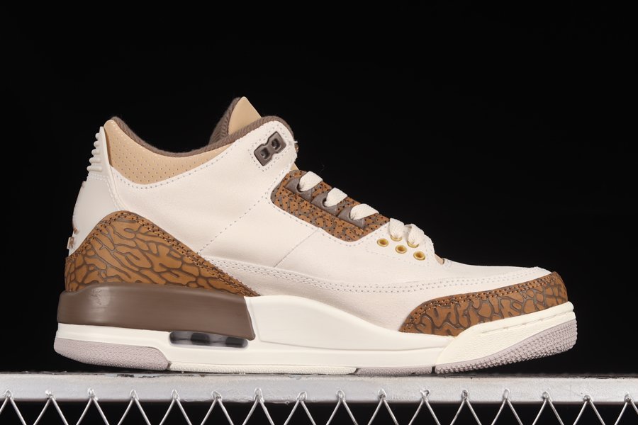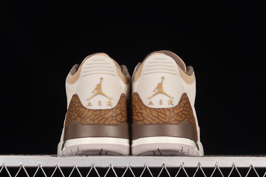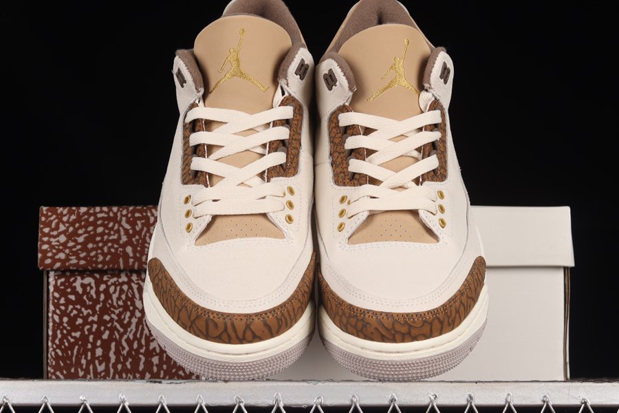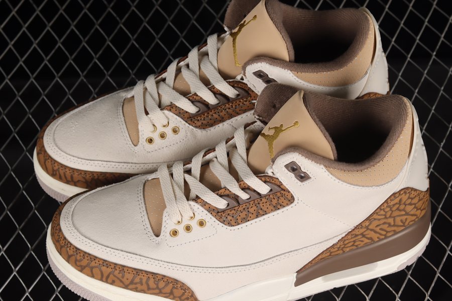 The Air Jordan 3 Palomino features a sophisticated color palette, with a Light Orewood Brown suede upper complemented by smooth leather on the mudguards and perforated collars. The elephant print overlays are rendered in a rich brown hue, adding a touch of texture to the design. Metallic Gold Jumpman logos adorn the tongues and heels, adding a subtle touch of luxury. The visible Air unit, designed to give off a vintage aesthetic, adds to the sneaker’s appeal. A Sail midsole and Grey rubber outsole complete the look, making for a stylish and versatile footwear option.
