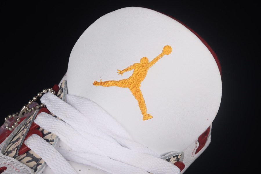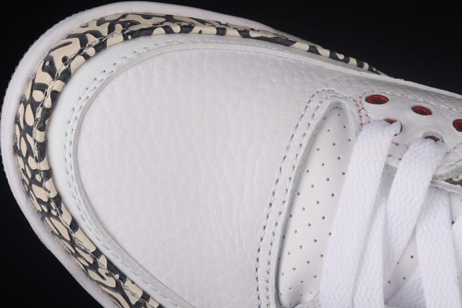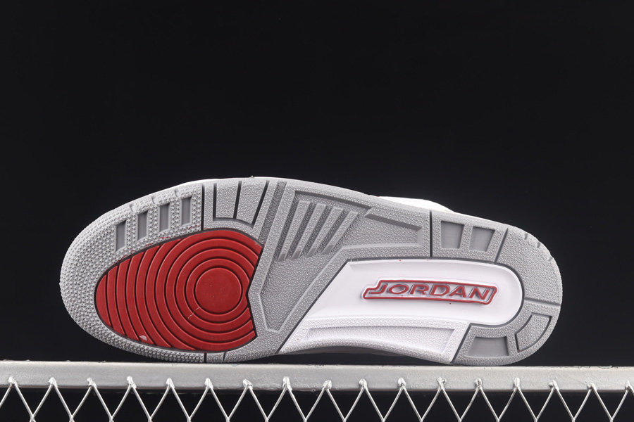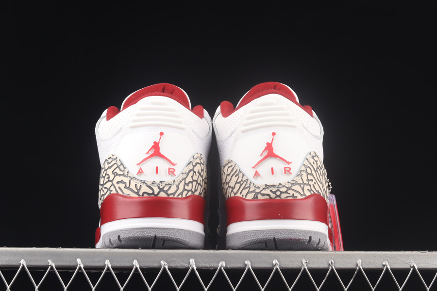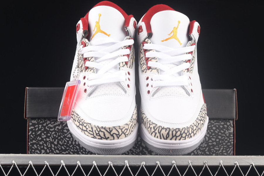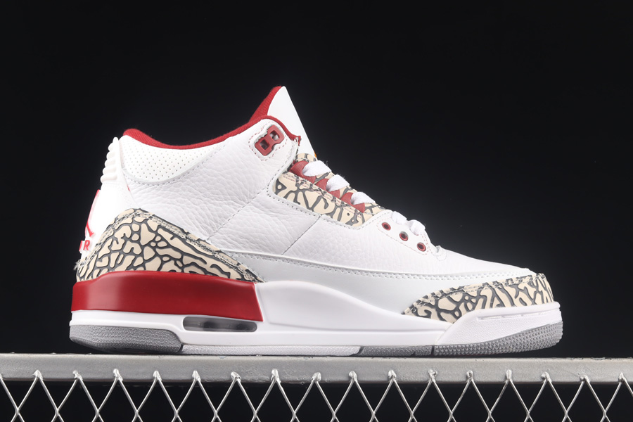 The Air Jordan 3 “Cardinal” features a white leather upper with splashes of color. The hits of Cardinal Red along the midsole, liner, and eyestays combine with a Light Curry Jumpman logo on the tongue.