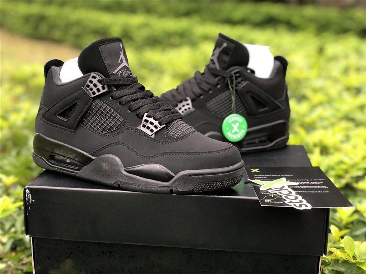 Like the OG pair, the 2020 Air Jordan 4 “Black Cat” boasts the familiar stealthy color scheme with Black and Light Graphite. The shoe’s nubuck construction is draped in black, while subtle hits of grey are implemented on the Jumpman Flight tongue tags. Finishing touches consist of tonal netting on the side panels, blacked out Jumpman branding on the heel and a black rubber sole featuring a miniature white Jumpman logo on the outsole.