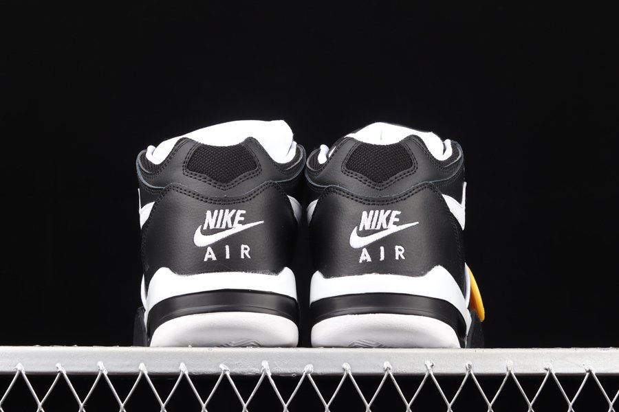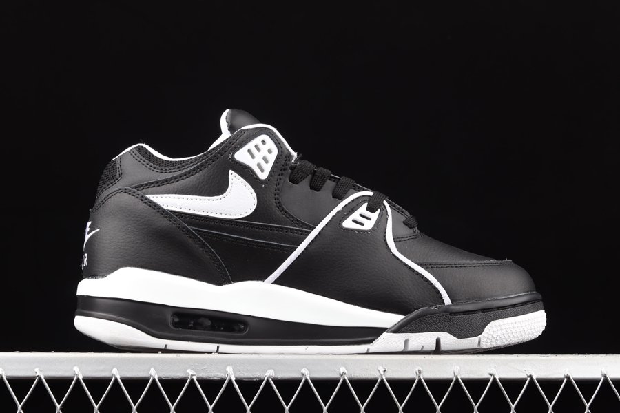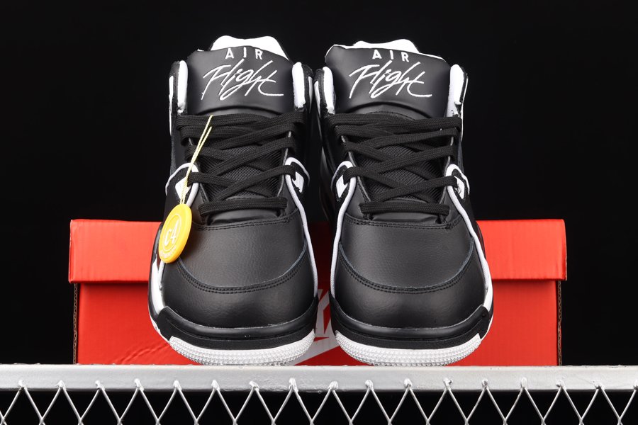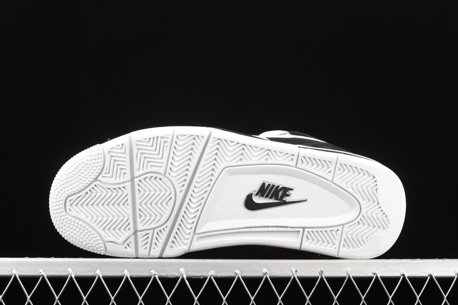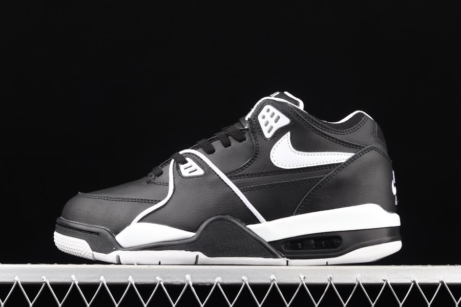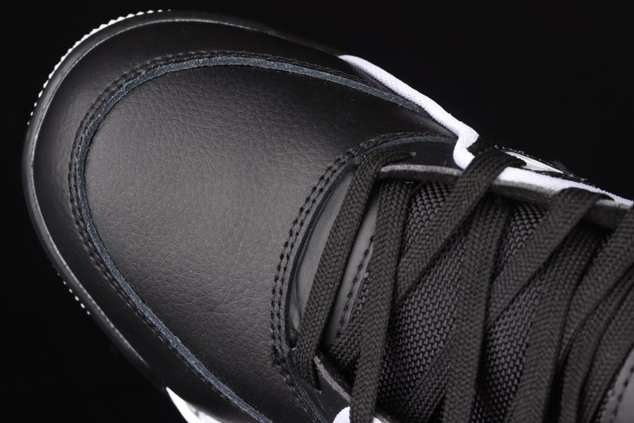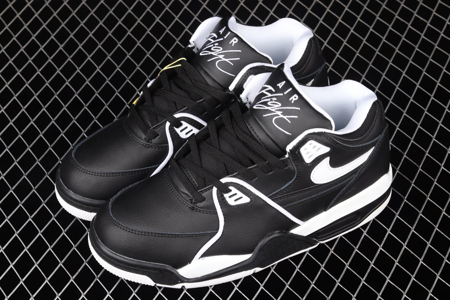 A classic “Black/White” colorway marks the ’89s first return to market since 2016’s tonal NikeLab iterations, making a point of getting all the classic styling correct. The upper is constructed of a black tumbled leather, which is accented by white midfoot trim and white plastic eyestays. The branding is all white too, with the elevated midfoot Swoosh, tongue badge and heel hit all standing out boldly against the dark base. Down below, the aforementioned AJ4-style midsole is split between black and white, with a white outsole completing the look.