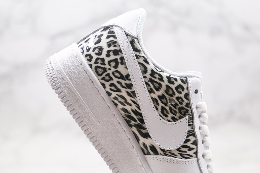 Custom Nike Air Force 1 Low Leopard Print White Black