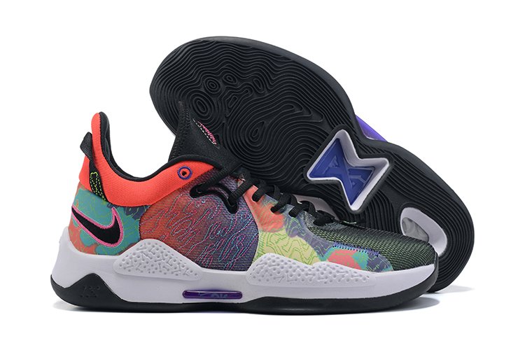 This Nike PG 5 comes dipped in Red, Yellow, Blue, Green, and Purple shades while constructed with lightweight, breathable materials. Highlighted with a heat-map pattern on the quarter panels and heel. We also have a full-length Nike Air Dot Weld Strobel for cushioning along with a multidirectional tread pattern outsole to finish the look.