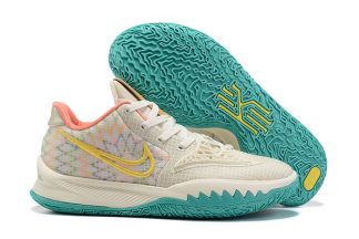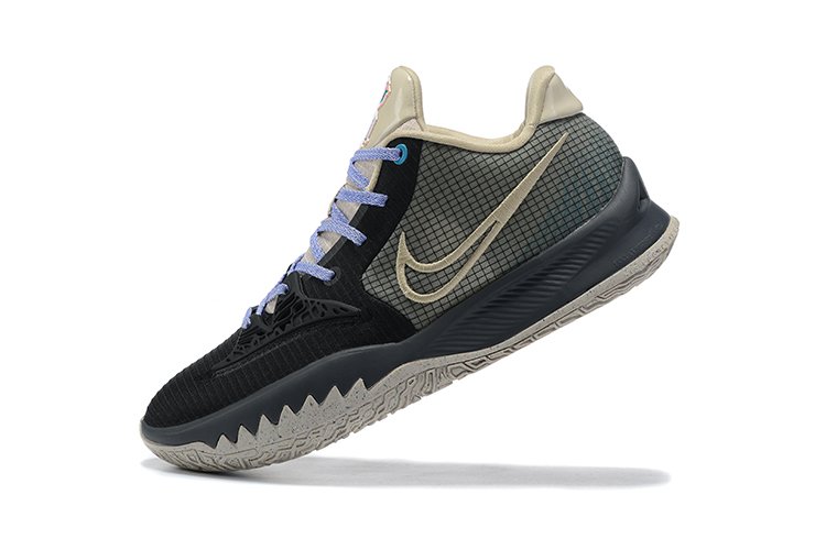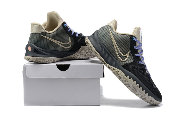 Sporting a blend of black, white and bone/sail tones for its majority, the low-top features a lightweight construction to help eliminate movement inside the shoe, while a cushlon foam and Zoom Air tooling provide a smooth, responsive ride. Additionally, the model is detailed with purple laces, blue Kyrie logos on the tongues, and orange accents throughout for a nice touch of contrast.