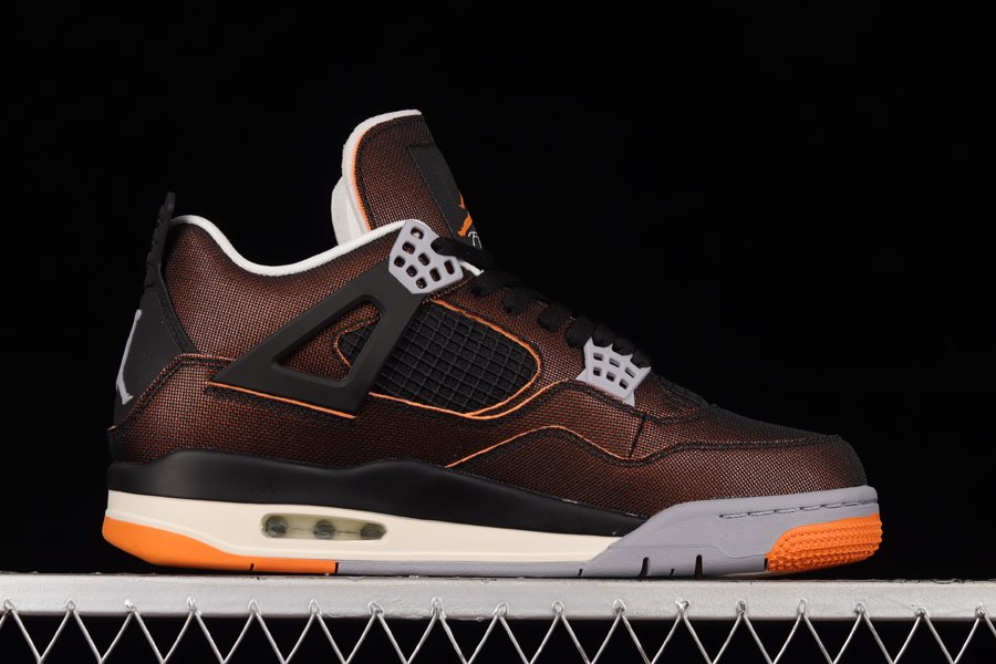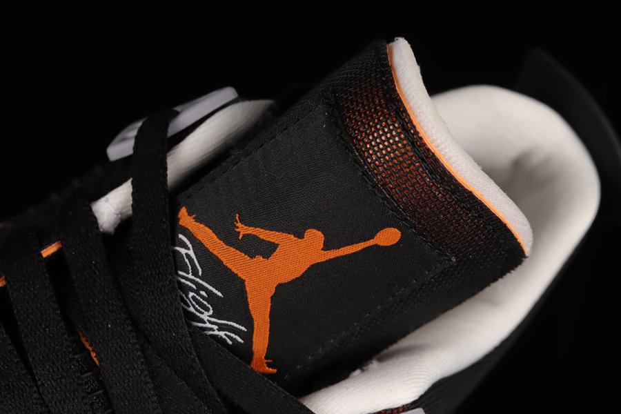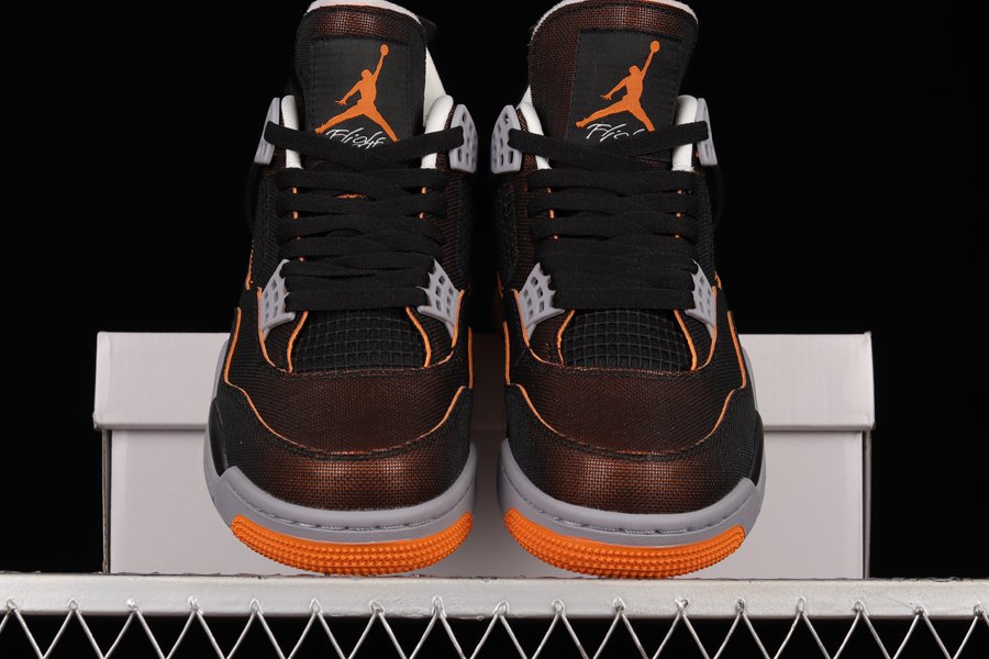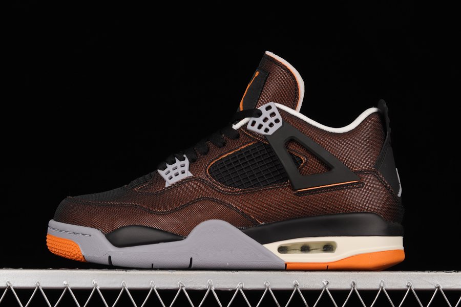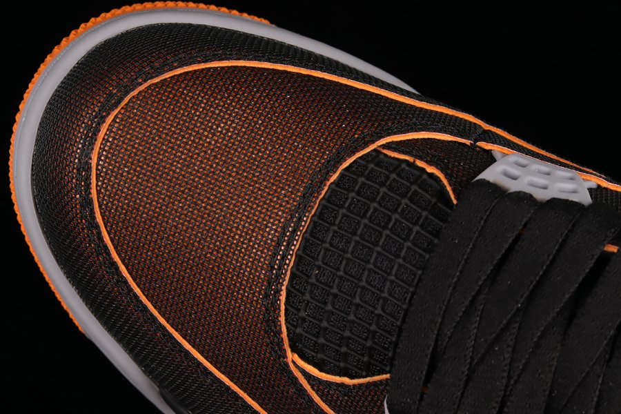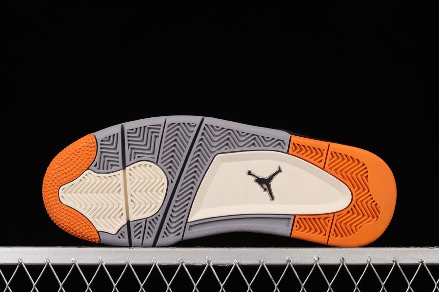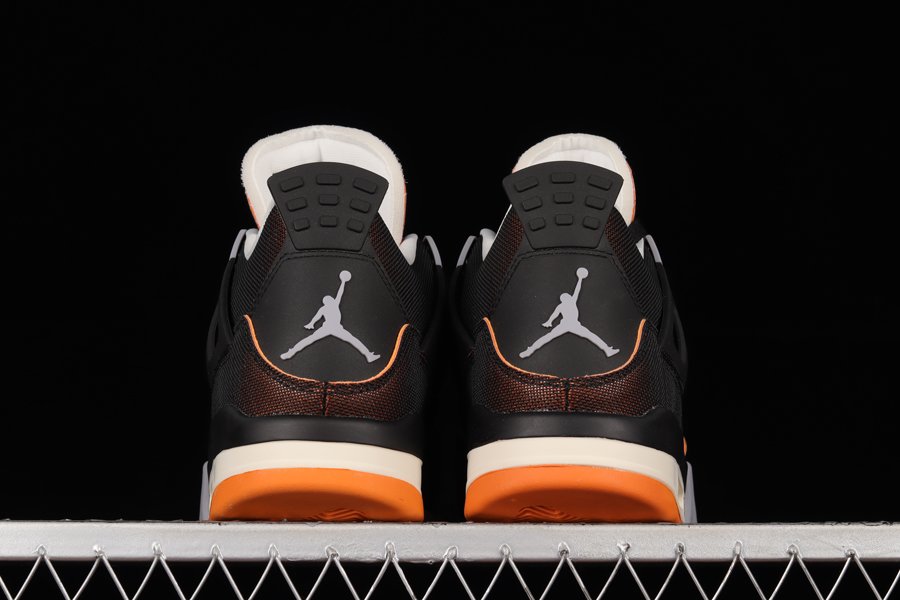 The Air Jordan 4 “Starfish is inspired by space exploration and the technical materials used in spacesuits. The upper is composed of black and Starfish Orange metallic mesh that is complemented by matte TPU heel tabs and wings. Black mesh netting on the quarter panel and tongue bottom lead up to a raw-edge construction on the tongue upper exposing the foam material underneath. Finally, pops of orange on the toe and heel of the rubber outsole top off the design.