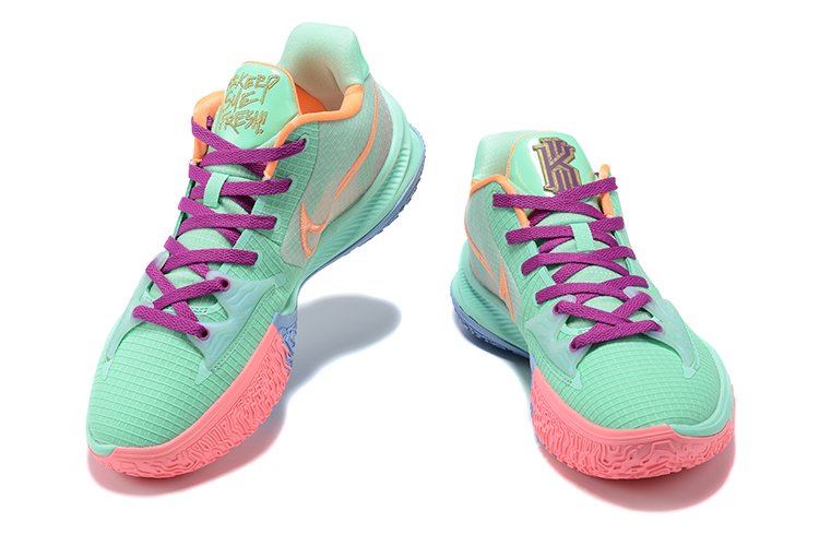 Taking on a bright appearance that is ideal for the summer season, this Nike Kyrie Low 4 pays homage to legendary WNBA player Sue Bird and comes done in a tropical green hue all throughout the mesh and synthetic construction on the upper. For contrast we see the addition of pink, orange, purple, and blue throughout various parts of the shoe. Wrapping things up we see Swoosh branding on the side panels, the Kyrie logo on the left tongue, and #KeepSurFresh on the right tongue.