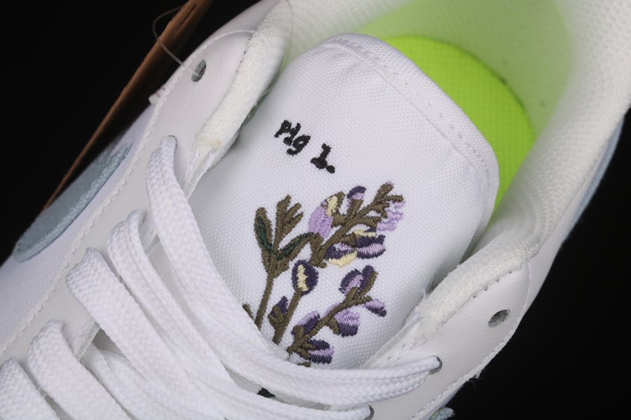 The construction then sees a pristine white hue that is then contrasted with canvas Nike Swoosh logos in a light blue tone. Though that all seems nothing out of the ordinary, these are rooted with a theme that nods to the Pomegranate Indigo plant, also known as True Indigo and you can read its scientific facts marked on the heel tabs. The setup is complete with dark cork textiles on the lace dubraes and rear region, and most especially, a fig tree embroidered on the tongue and lateral heel alike.