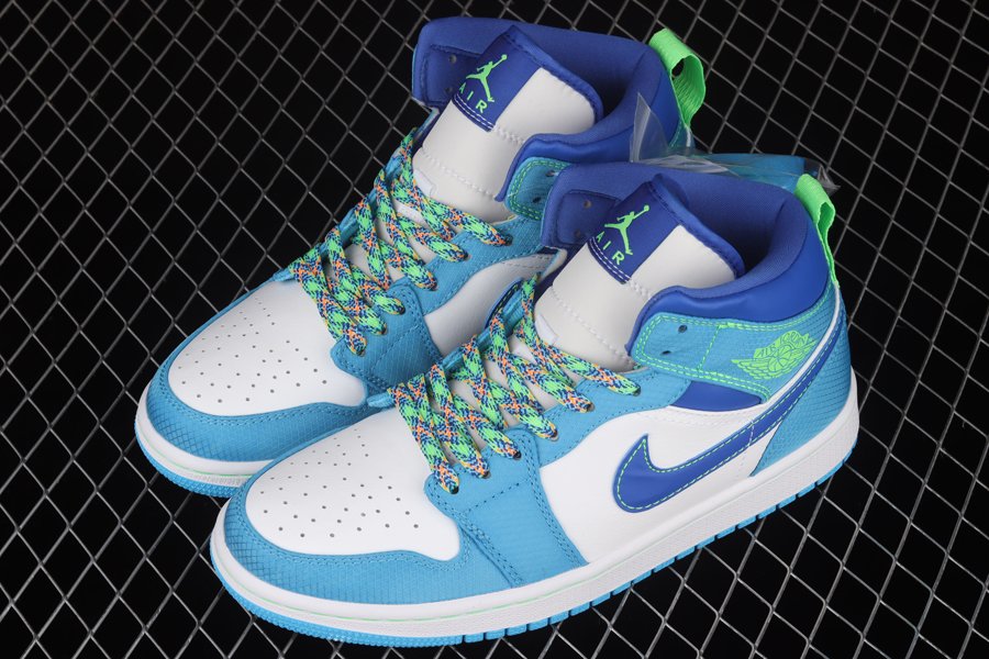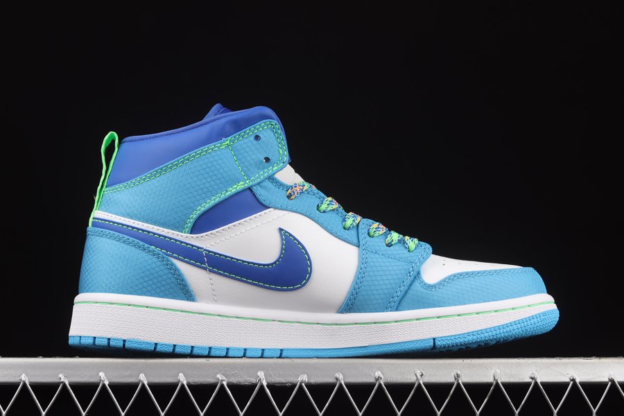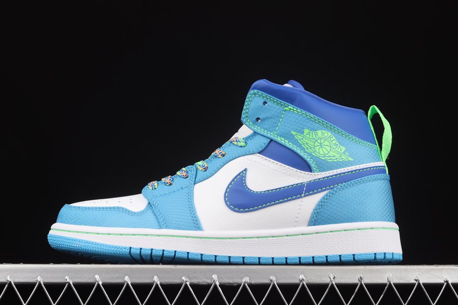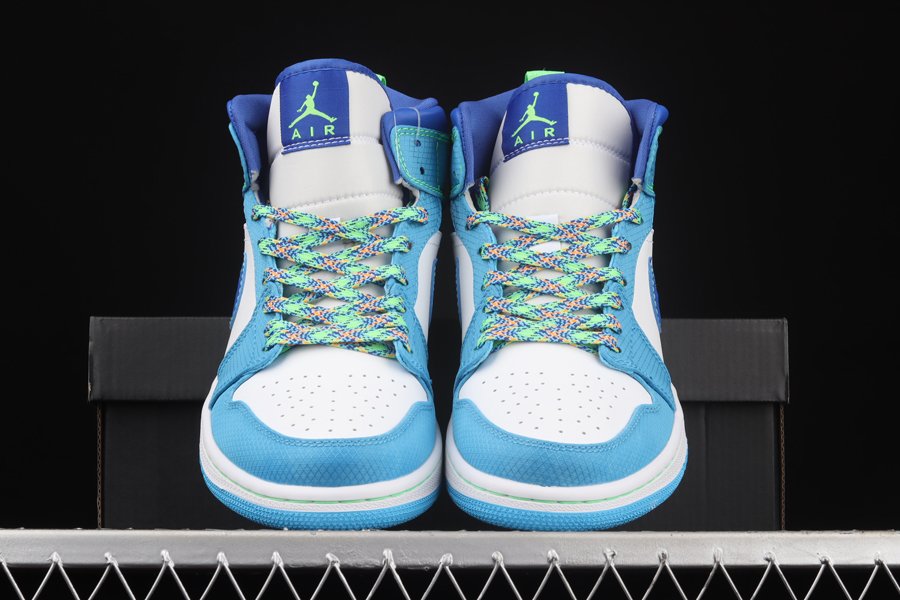 DA8010-400 Air Jordan 1 Mid Light Blue/Royal Blue-Neon Green pas cher