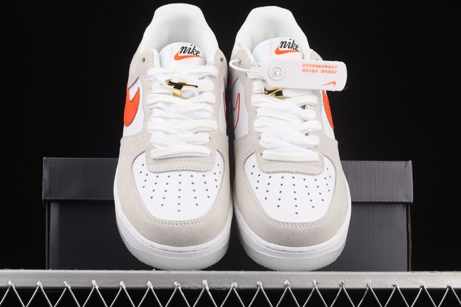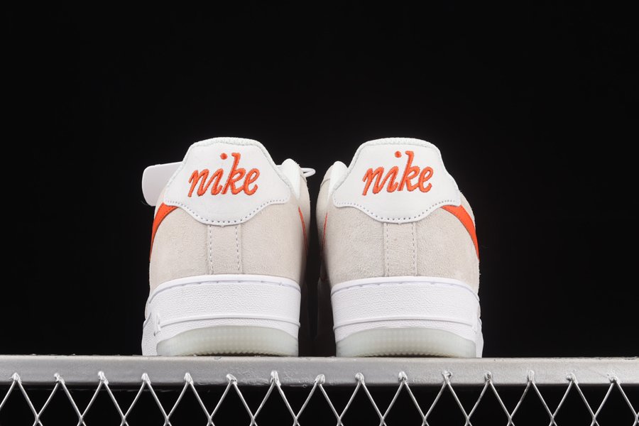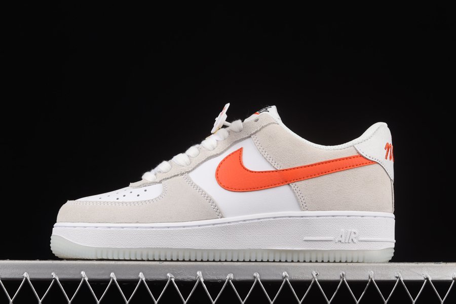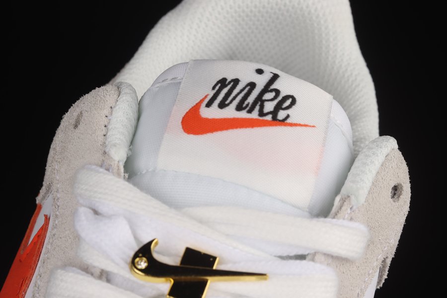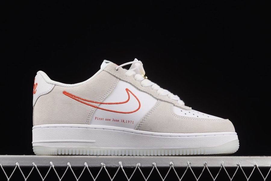 Just like the previously-previewed options, this Air Force 1 identifies June 18th, 1971 as the trademarked date, embroidered below the orange outlined Swoosh – also embroidered – though this time it arrives on the medial side as opposed to the other options on the lateral. Vintage cursive Nike branding in the rear match the accompanying orange shade of the lateral leather Swoosh and tongue branding, with everything else arriving in white leather and undyed suede. Capping off the design is a simple solid white sole unit, and special lace bling – a golden Swoosh mounted with a solitary diamond.