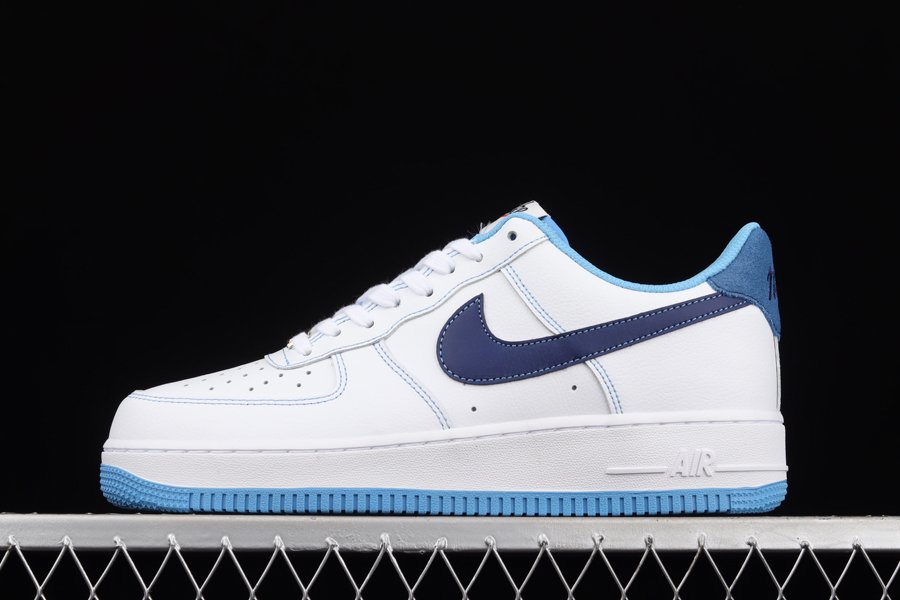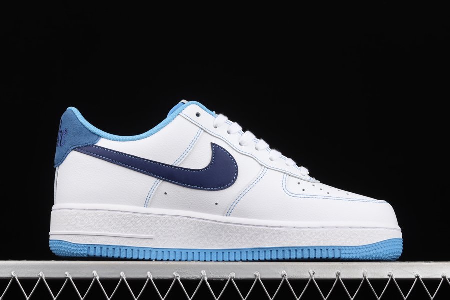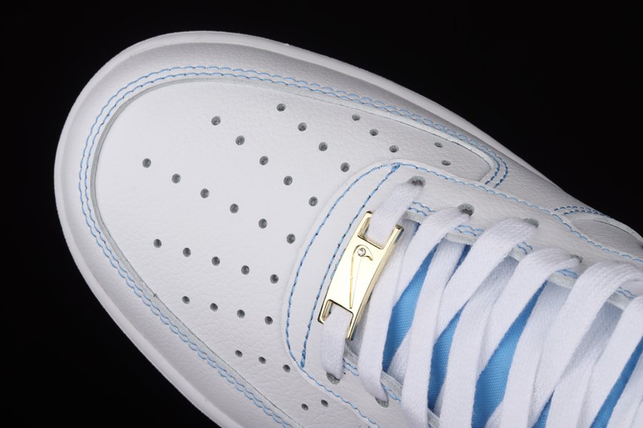This Nike Air Force 1 Low “First Use” is decked out in a signature white leather base. Elevating the sneaker’s overall look are contrasting “Dark Blue” Swoosh insignias, “Light Blue” suede heel overlays, “University Blue” nylon tongues, and blue stitching throughout. Rounding out the overall look are “Metallic Gold” lace dubraes and branded insoles.
