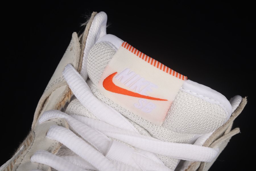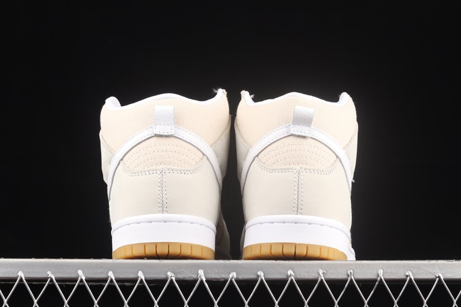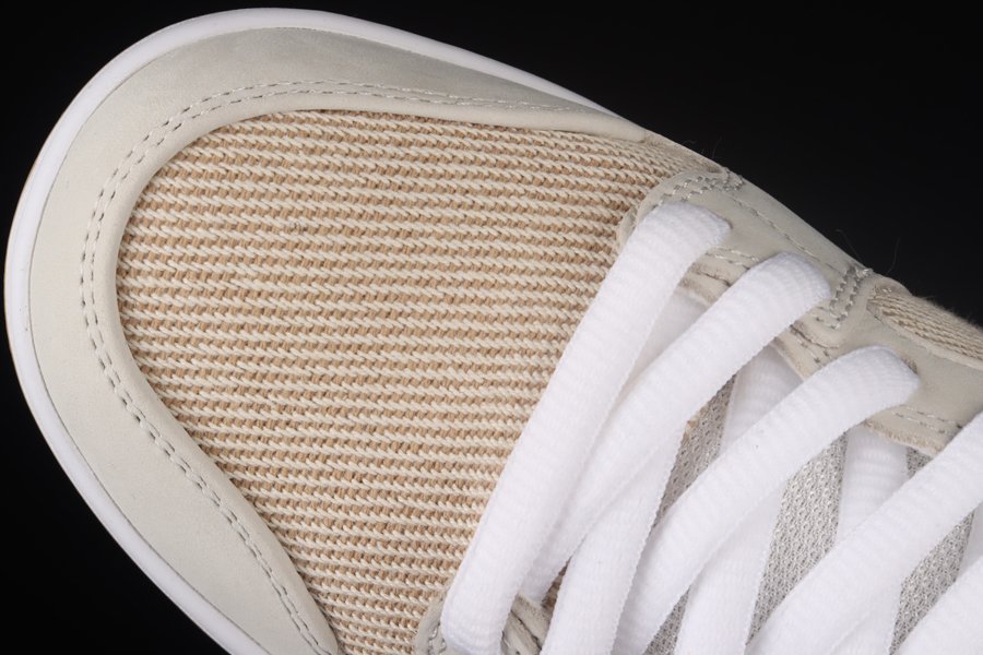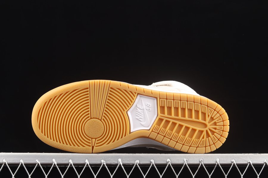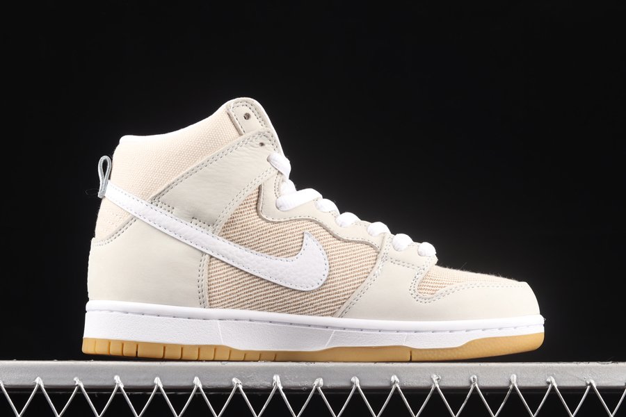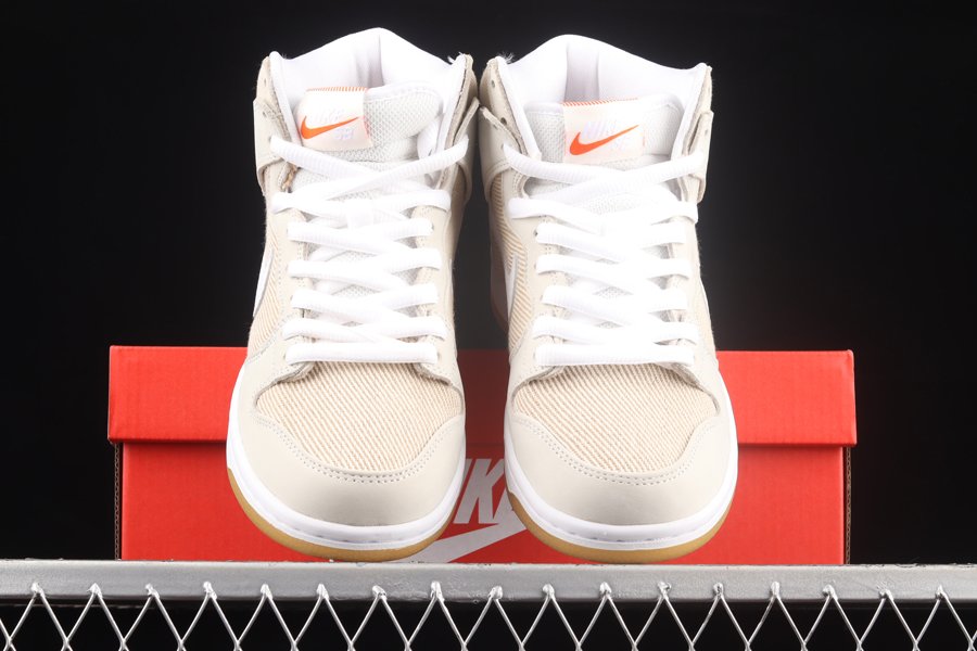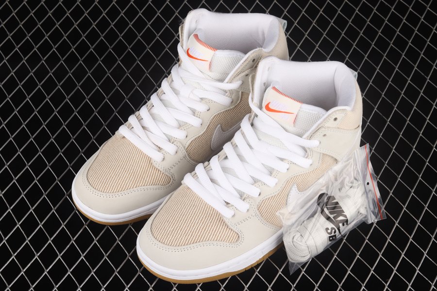 The Nike SB Dunk High “Unbleached” boasts a light tan base that’s composed of woven canvas, while white leather and suede adorns its overlays. Other details consist of mesh tongues, white leather Swooshes, orange Nike SB branding on the insoles, and a gum rubber outsole to round out the profile.