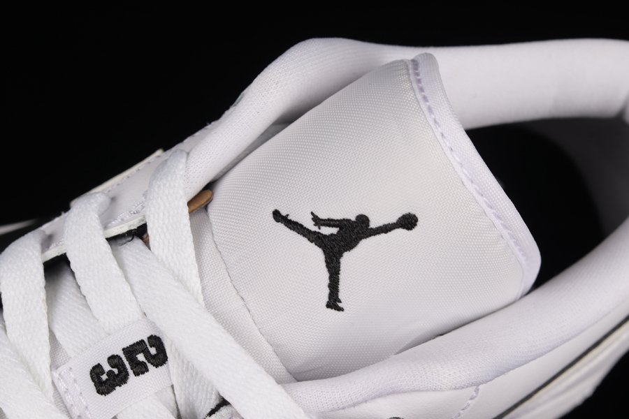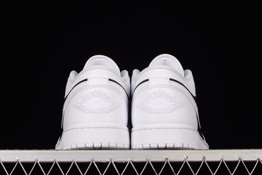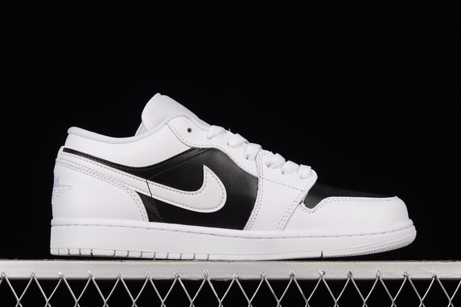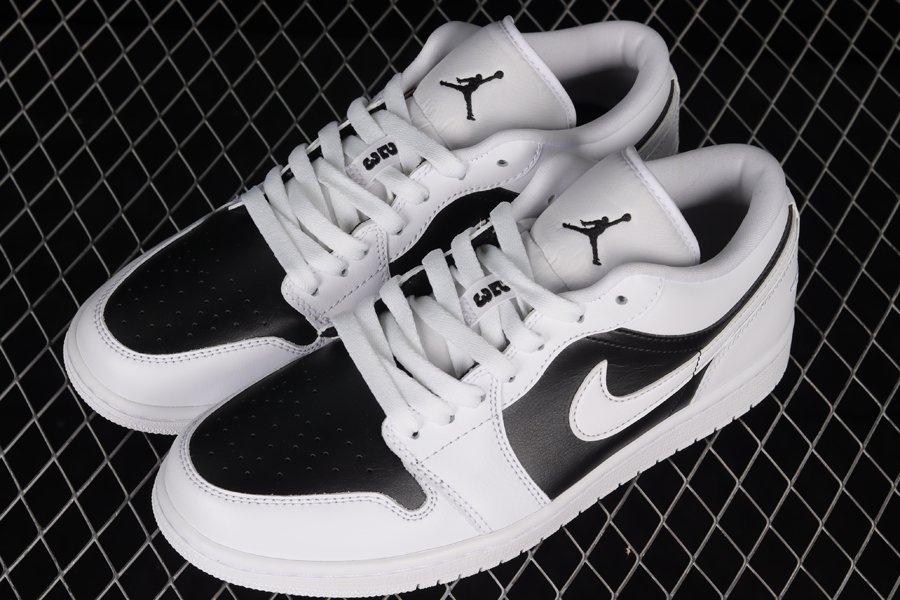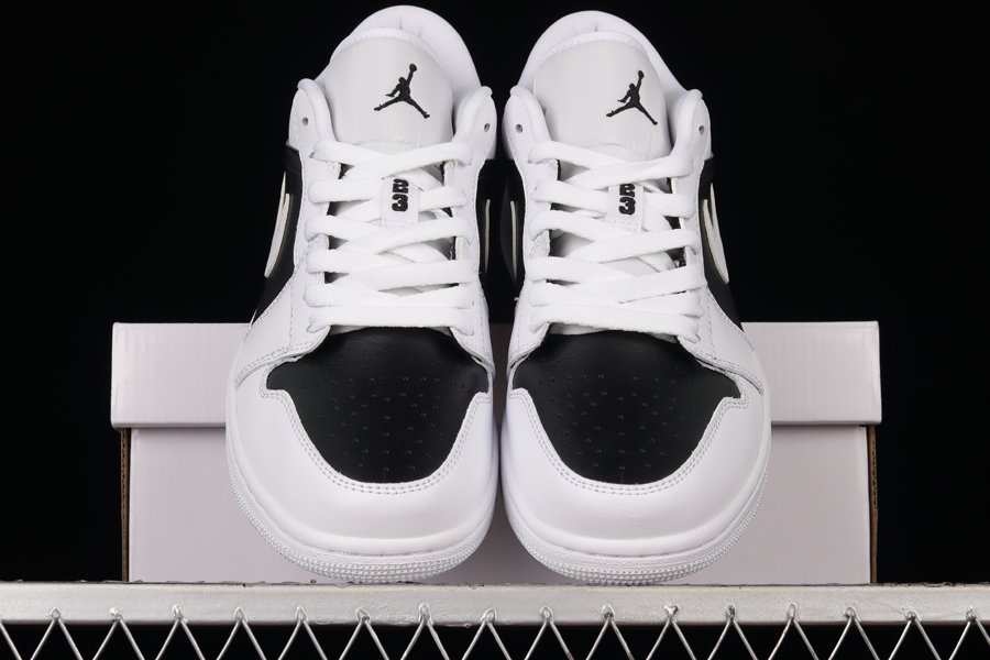 Uppers are constructed from smooth leather, save for the tongue which is built of padded nylon. Black toeboxes and quarter panels are bordered by white mudguards, eyestays and heels, while a white Swoosh splits the quarter panel in two for the most jarring contrast you’ll find on the “Panda.” Apart from this Swoosh, other branded hits arrive via a black Jumpman on the tongue, a black #23 on the lace keeper and a tonal ball-and-wings logo on the heel. White laces bring the top half together, and down below white midsoles work with white outsoles to round off the look.
