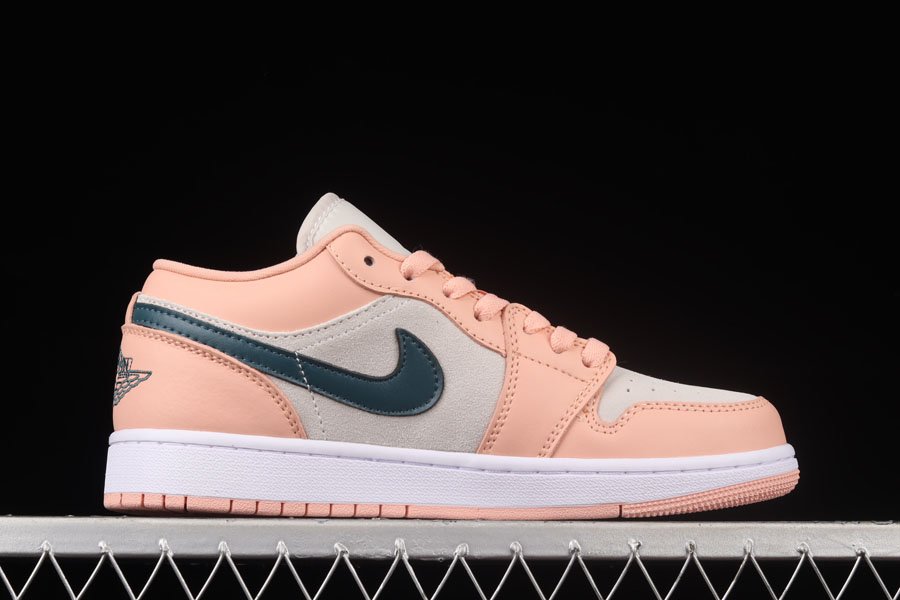 Taking a look at this Air Jordan 1 Low, the popular sneaker from Jordan Brand starts off with a neutral tan/beige suede construction on the base of the sneaker which is then heavily contrasted by pink leather all throughout the overlays. For more color we see the addition of dark teal on the Swooshes, tongue and heel branding, and the embroidered Wings on the heels. White rubber midsoles and pink outsoles wrap up the look on this Air Jordan 1 Low.