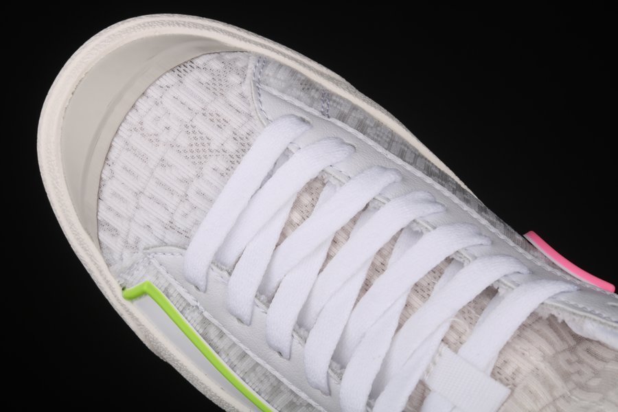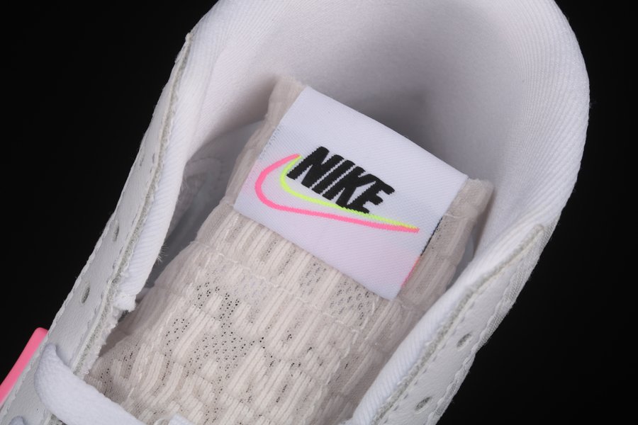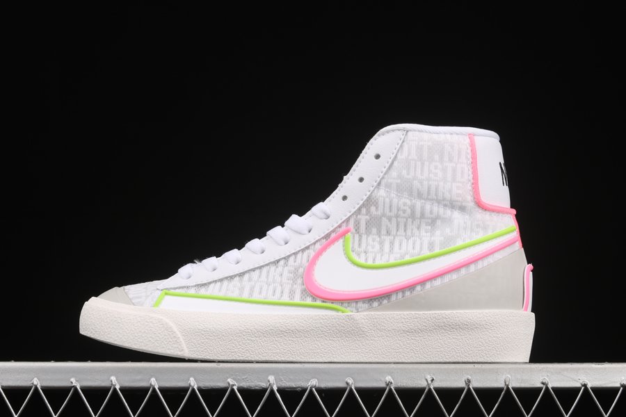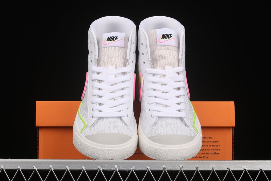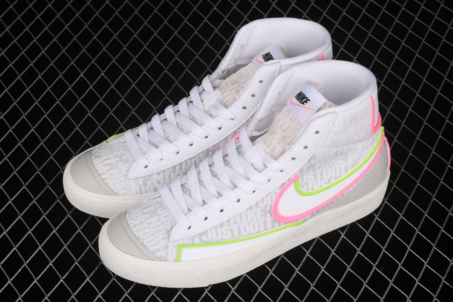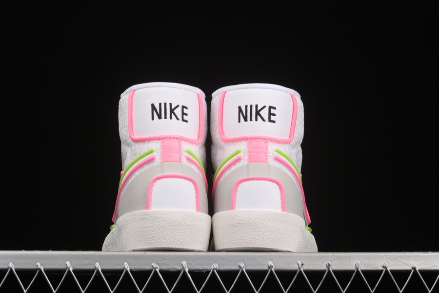 Dressed in a White, Electric Green, and Sunset Pulse colors scheme. This Nike Blazer Mid features a White leather base with Green and Pink overlays and synthetic material used on the bold Swooshes, up front and heels. D/MS/X branding underneath the padded tongues atop a solid White rubber sole completes the design.