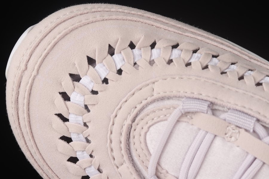 The Air Max 97 keeps it simple with a monochromatic upper, made with a smooth pastel pink suede. This most notable detail is the “Woven” feature that wraps around the shoe and is accented with a white ribbon in the middle. A corresponding white midsole and Nike’s signature “Air” unit completes the sneaker.